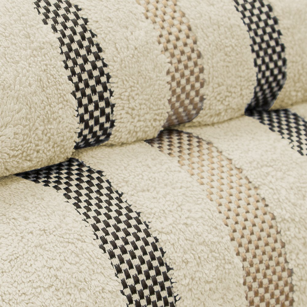 Πετσέτα Baho της εταιρείας Lino Home! Η πετσέτα Baho είναι κατασκευασμένη από υψηλής ποιότητας βαμβάκι πενιέ, βάρους 600gsm/m2, που προσφέρει εξαιρετική απαλότητα και απορροφητικότητα. Διαθέτει off white βάση ενώ τη διακοσμούν υφαντές ρίγες σε μπεζ-καφέ αποχρώσεις, οι οποίες δημιουργούν κομψό γεωμετρικό σχέδιο. Η πετσέτα baho είναι ιδανική για καθημερινή χρήση, προσφέροντας πολυτέλεια και αντοχή.