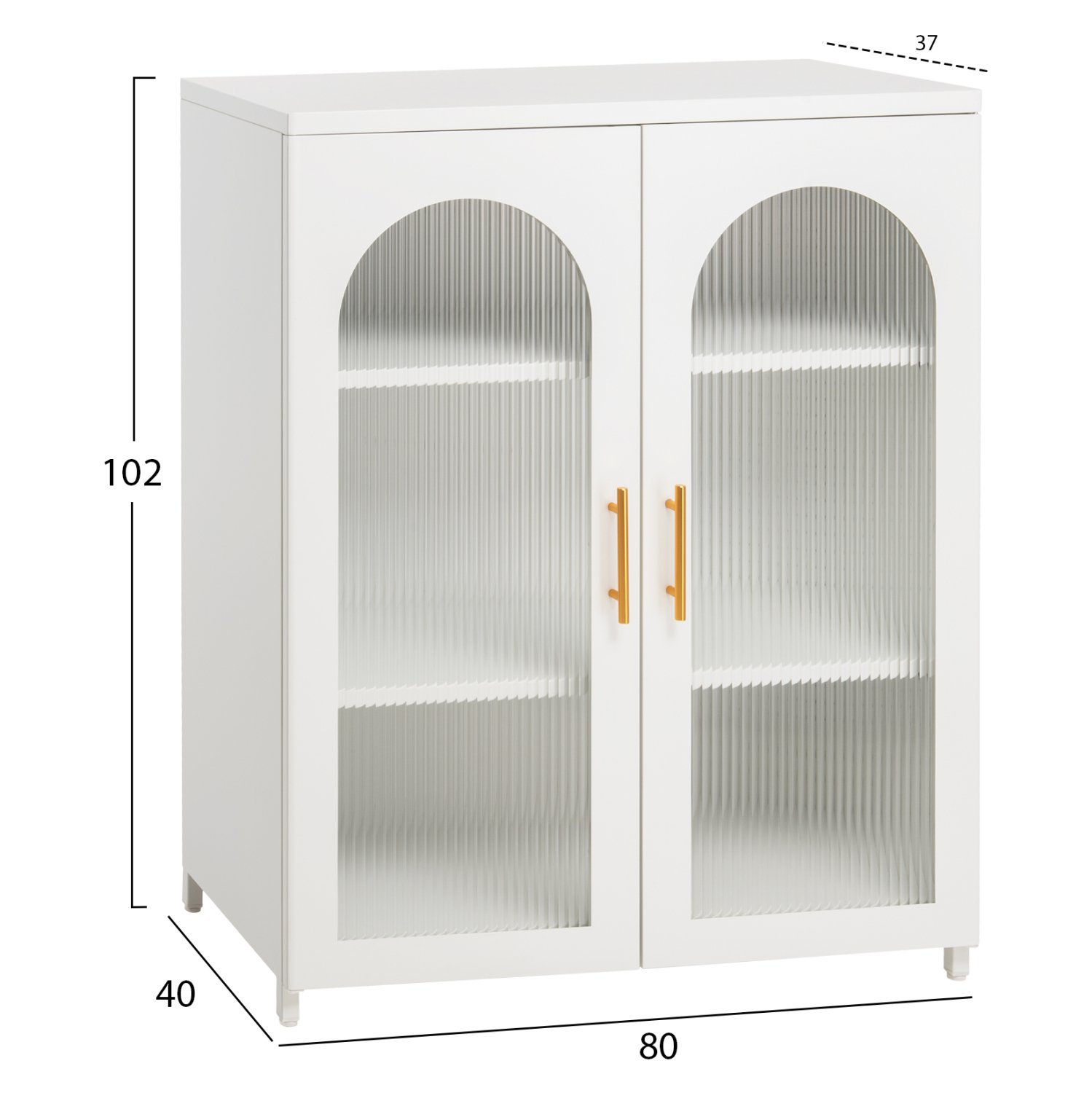 Το CARIL είναι ένα πρακτικότατο μεσαίου ύψους μεταλλικό ντουλάπι-βιτρίνα που έχει φτιαχτεί με γνώμονα την χωρητικότητα για το μέγεθός της και την ανθεκτικότητα. Έχει δύο πόρτες με γυάλινο ραβδωτό τζάμι (βιτρίνα) και με χρυσά χερούλια ενώ το εσωτερικό είναι ένας χώρος με 2 ράφια που δημιουργούν 3 μεγάλους αποθηκευτικούς χώρους. Το χρώμα του ντουλαπιού είναι ΛΕΥΚΟ. Τα πόδια είναι χαμηλά και διαθέτουν ρεγουλατόρους ύψους για μεγαλύτερη ευελιξία στον χώρο που θέλετε να τοποθετήσετε το ντουλάπι.