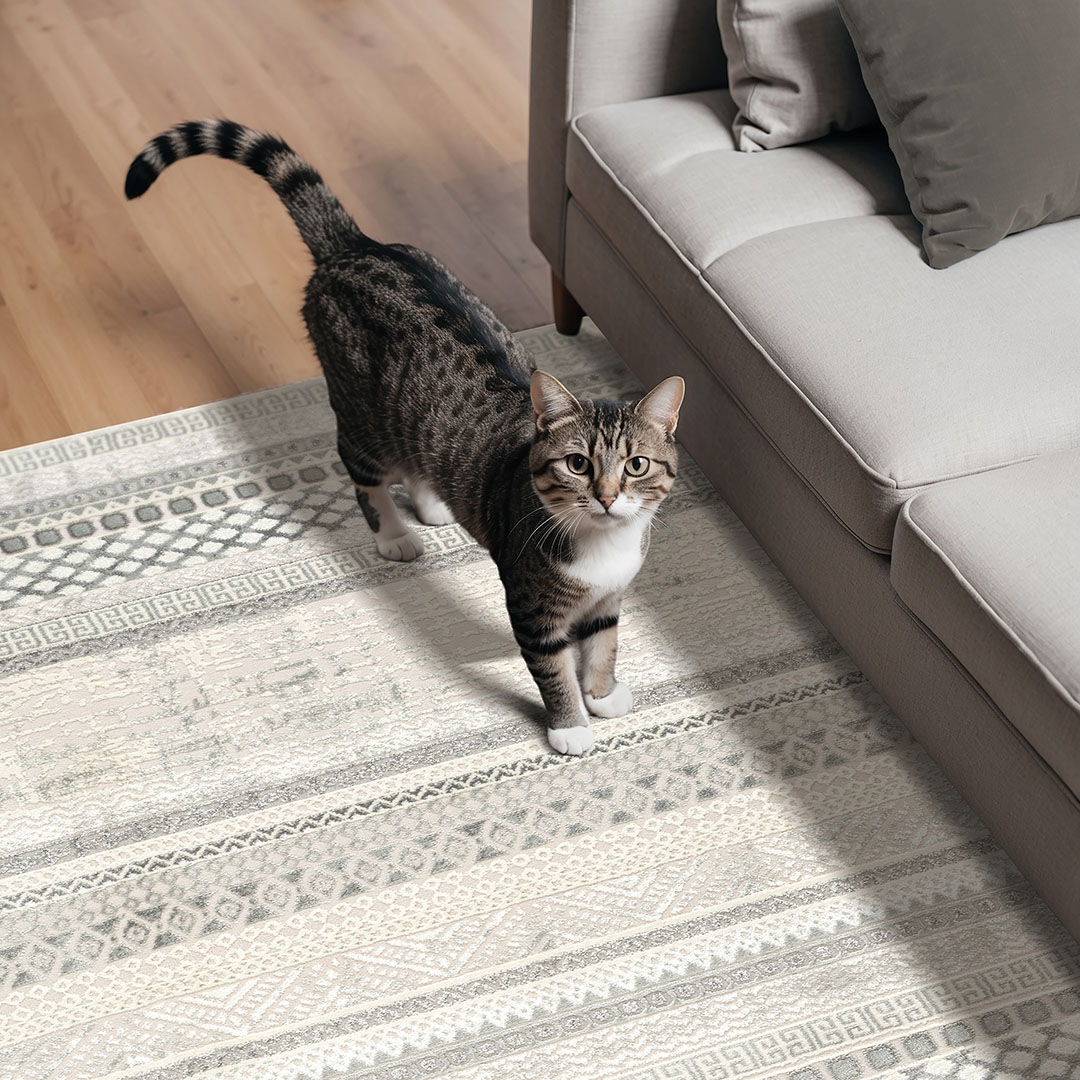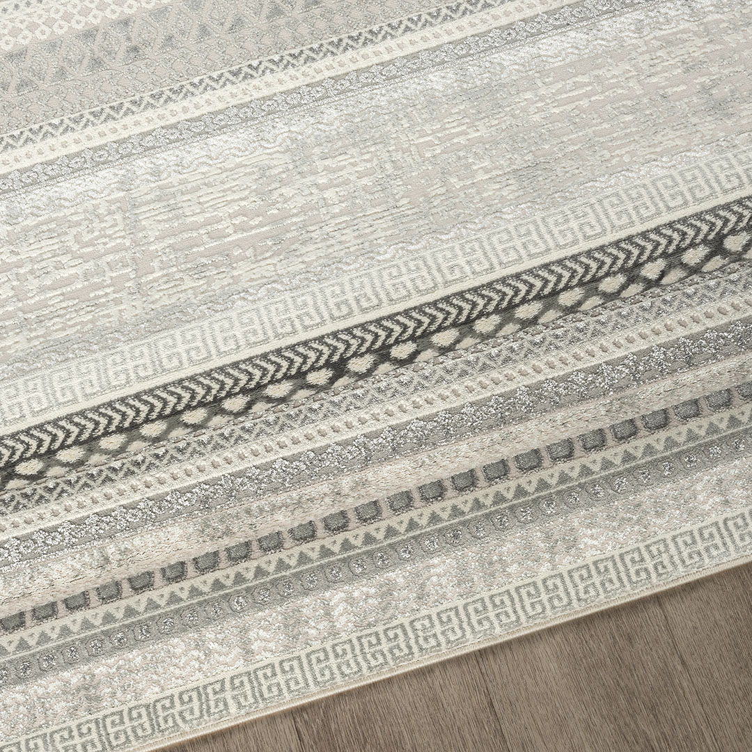 Τα μοντέρνα γεωμετρικά σχέδια του χαλιού Jade, προσφέρουν μια μοναδική αίσθηση κίνησης και ζωντάνιας, ενώ οι ουδέτερες αποχρώσεις του δένουν αρμονικά με κάθε διακόσμηση. Με γυαλιστερό νήμα που αιχμαλωτίζει το φως και αναδεικνύει τα μοντέρνα του σχέδια καθιστά το χαλί Jade ένα αληθινό έργο τέχνης για το δάπεδο σας
