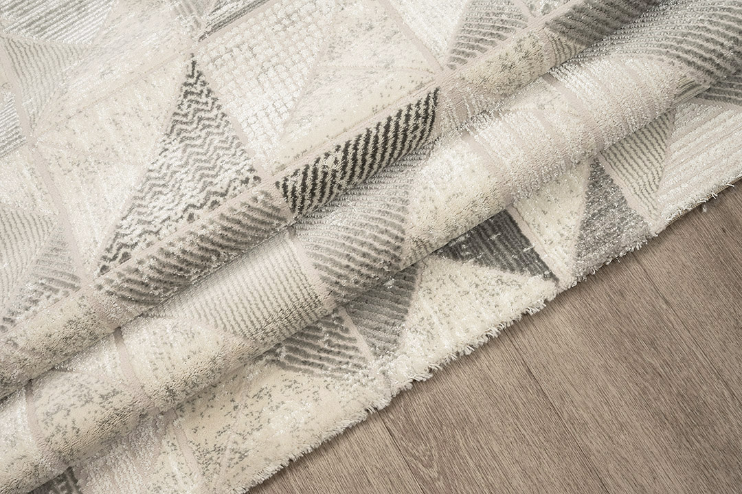 Τα μοντέρνα γεωμετρικά σχέδια του χαλιού Jade, προσφέρουν μια μοναδική αίσθηση κίνησης και ζωντάνιας, ενώ οι ουδέτερες αποχρώσεις του δένουν αρμονικά με κάθε διακόσμηση. Με γυαλιστερό νήμα που αιχμαλωτίζει το φως και αναδεικνύει τα μοντέρνα του σχέδια καθιστά το χαλί Jade ένα αληθινό έργο τέχνης για το δάπεδο σας