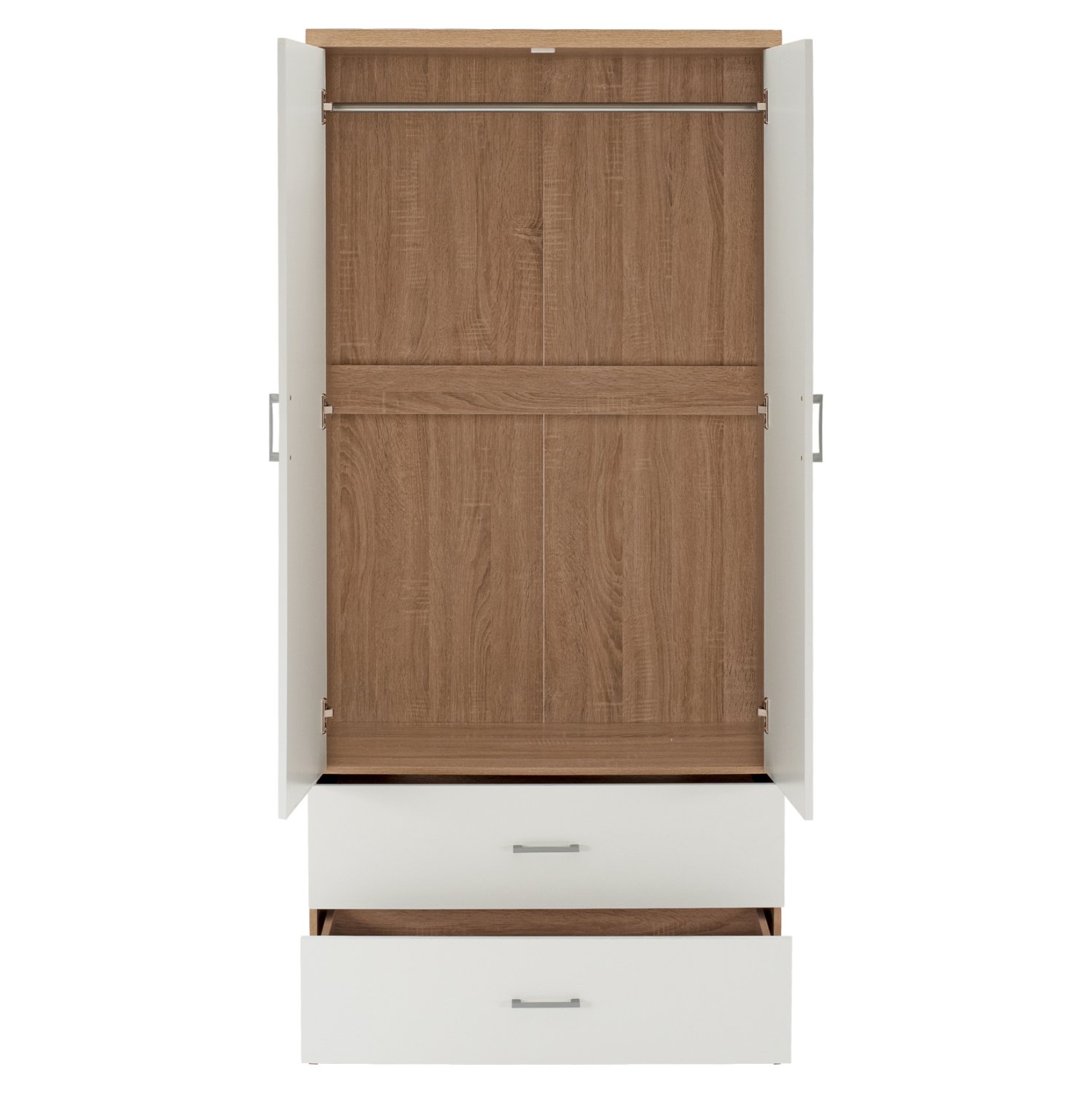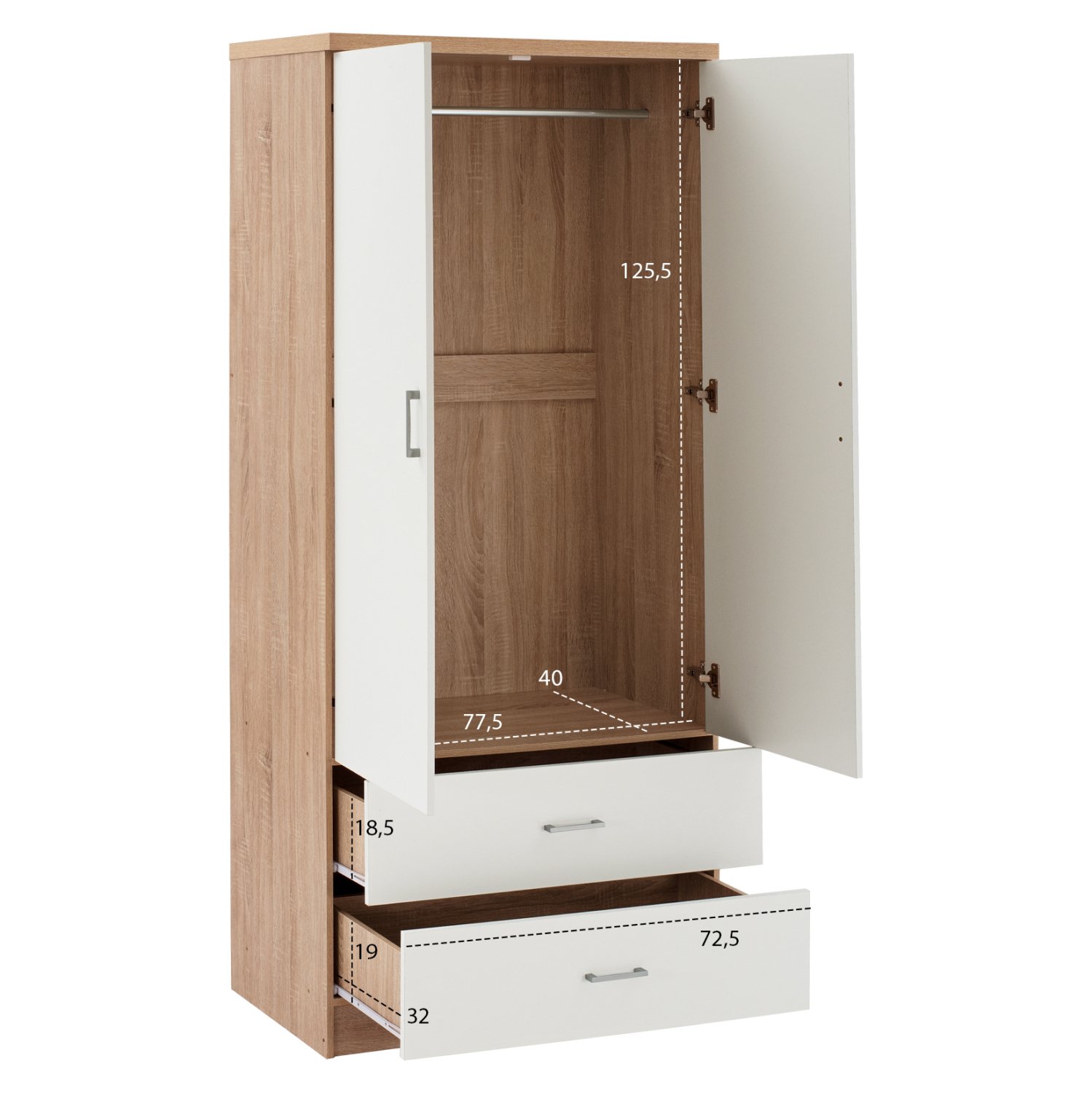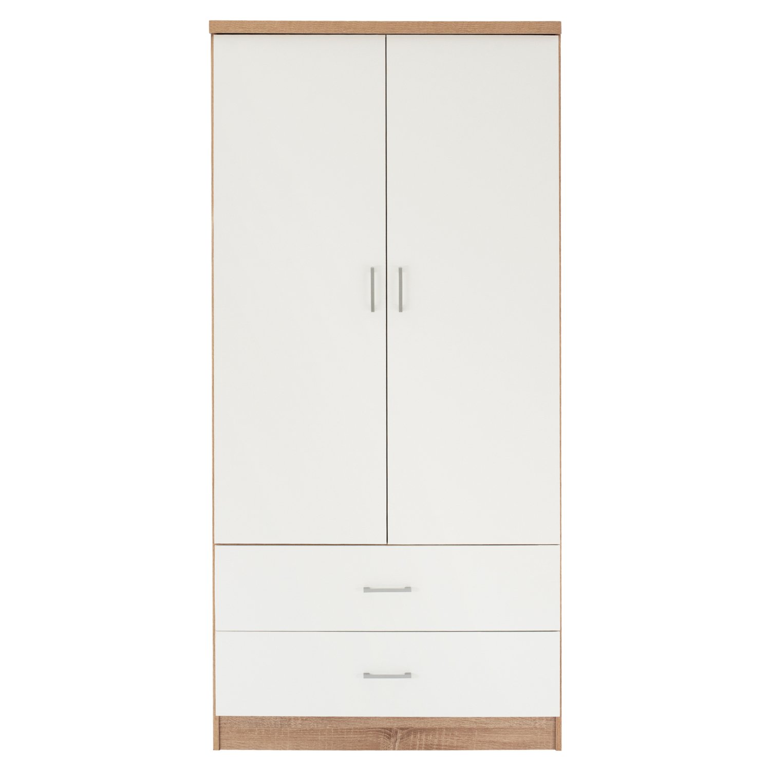 Ντουλάπα μελαμίνης δίφυλλη με δύο συρτάρια σε sonama και λευκή απόχρωση.
