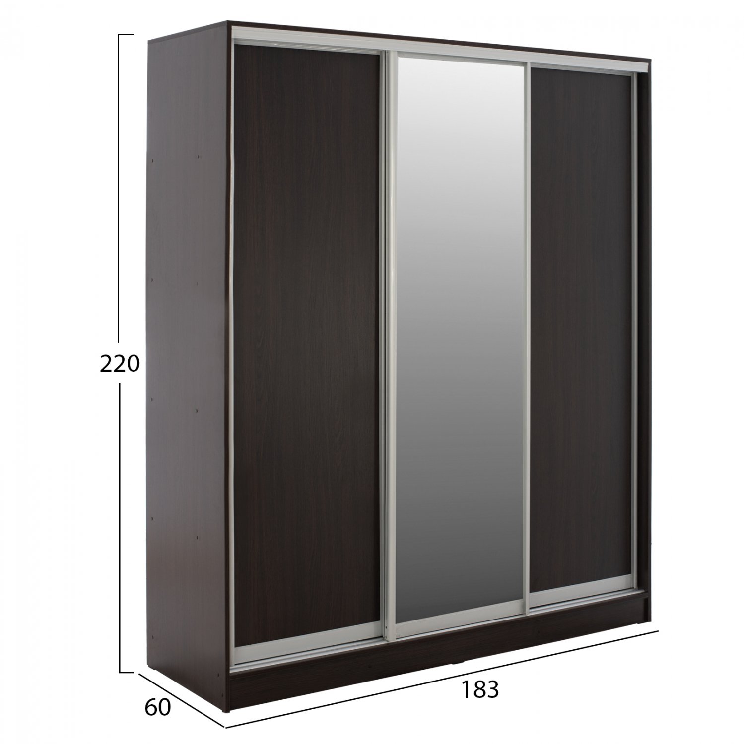 Ντουλάπα τρίφυλλη, σε wenge απόχρωση, 183x60x220 εκ.