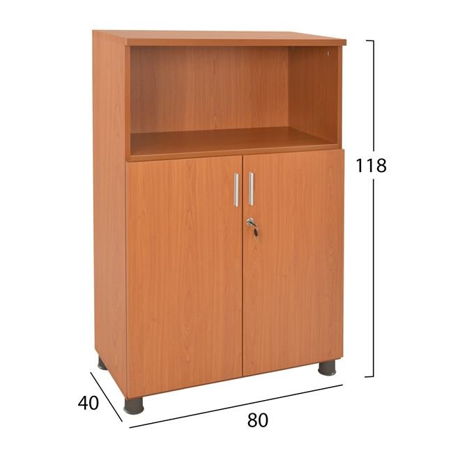 Ντουλάπι γραφείου για επαγγελματική χρήση, κατασκευασμένο από ανθεκτική μελαμίνη σε κερασί απόχρωση με δύο πόρτες, έναν ανοιχτό αποθηκευτικό χώρο,