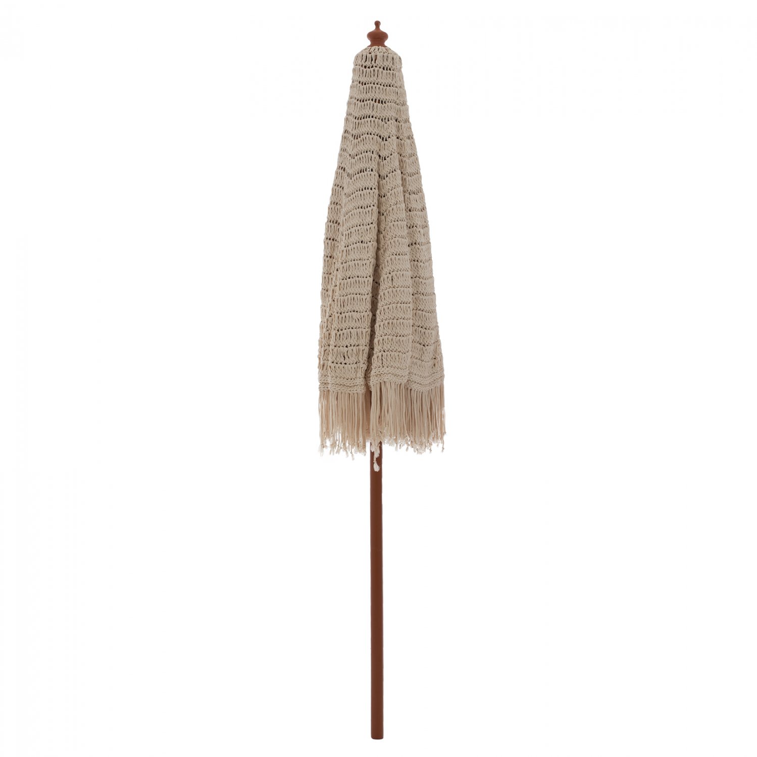 Ομπρέλα Φ2,30μ. με ξύλινο σκελετό, 8 ακτίνες και διπλή τροχαλία, με πλέξη ΜΑΚΡΑΜΕ, σε μπεζ απόχρωση.