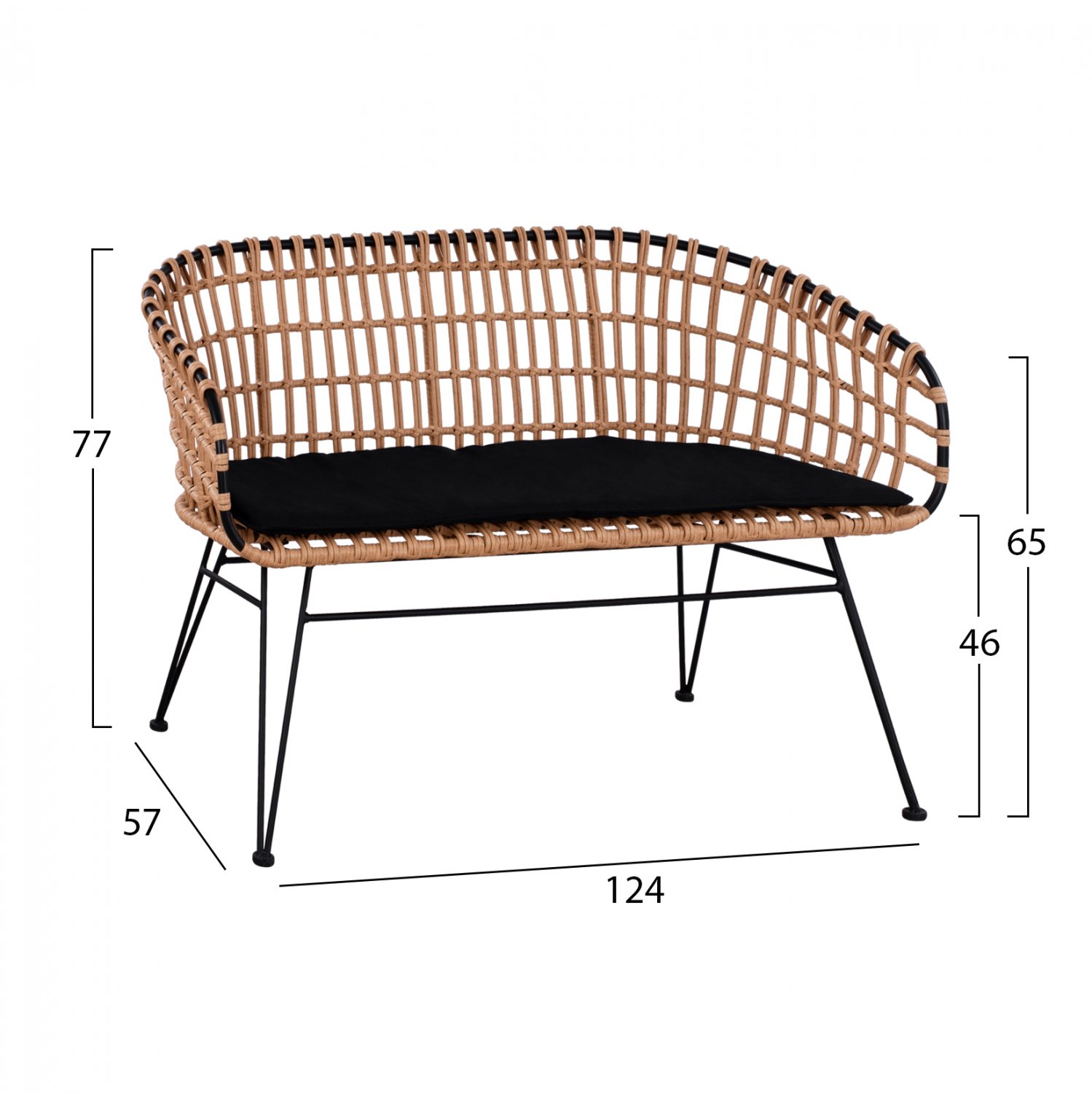 ΠΑΓΚΑΚΙ ΜΕΤΑΛΛΙΚΟ ALLEGRA HM5692 ΜΕ WICKER ΜΑΥΡΟ-ΜΠΕΖ 124x57x77Υ εκ.