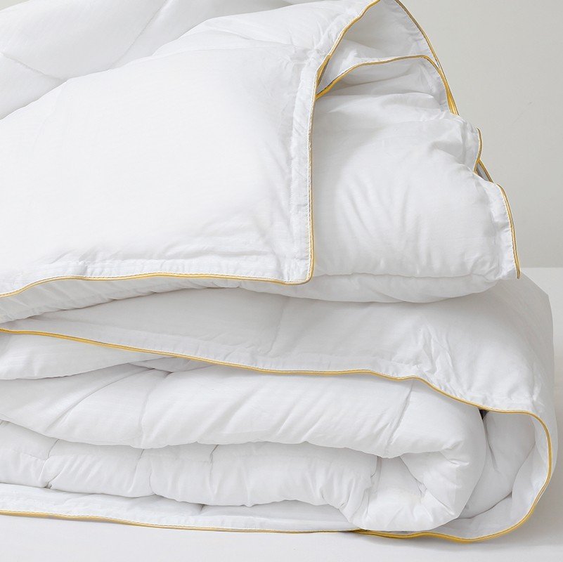 Πάπλωμα λευκό βαμβακερό με δείκτη θερμότητας 9 tog. Κατασκευασμένο από 100% βαμβακερό ύφασμα percale 233 κλωστών εξωτερικά και γέμιση από 100% μικροΐνες βάρους 300 GSM, αποτελεί την ιδανική επιλογή σκεπάσματος για τους χειμερινούς μήνες του έτους. Προσφέρει εξαιρετικά μαλακή αίσθηση η οποία θυμίζει αυτή ενός πουπουλένιου παπλώματος. Διατίθεται σε συσκευασία – τσάντα non-woven.