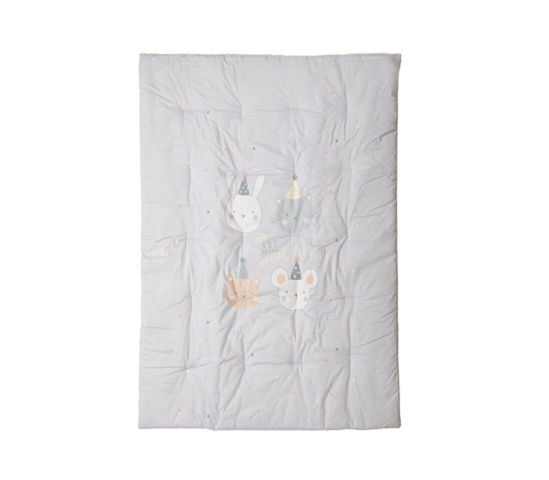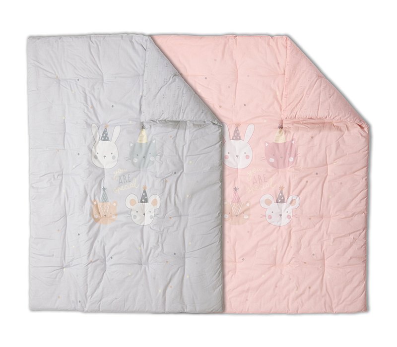 Βρεφικό πάπλωμα κούνιας διάστασης 110x140cm. Κατασκευασμένο με ύφασμα από 100% βαμβάκι και γέμισμα 100% πολυέστερα, βάρους 300gr/m2.