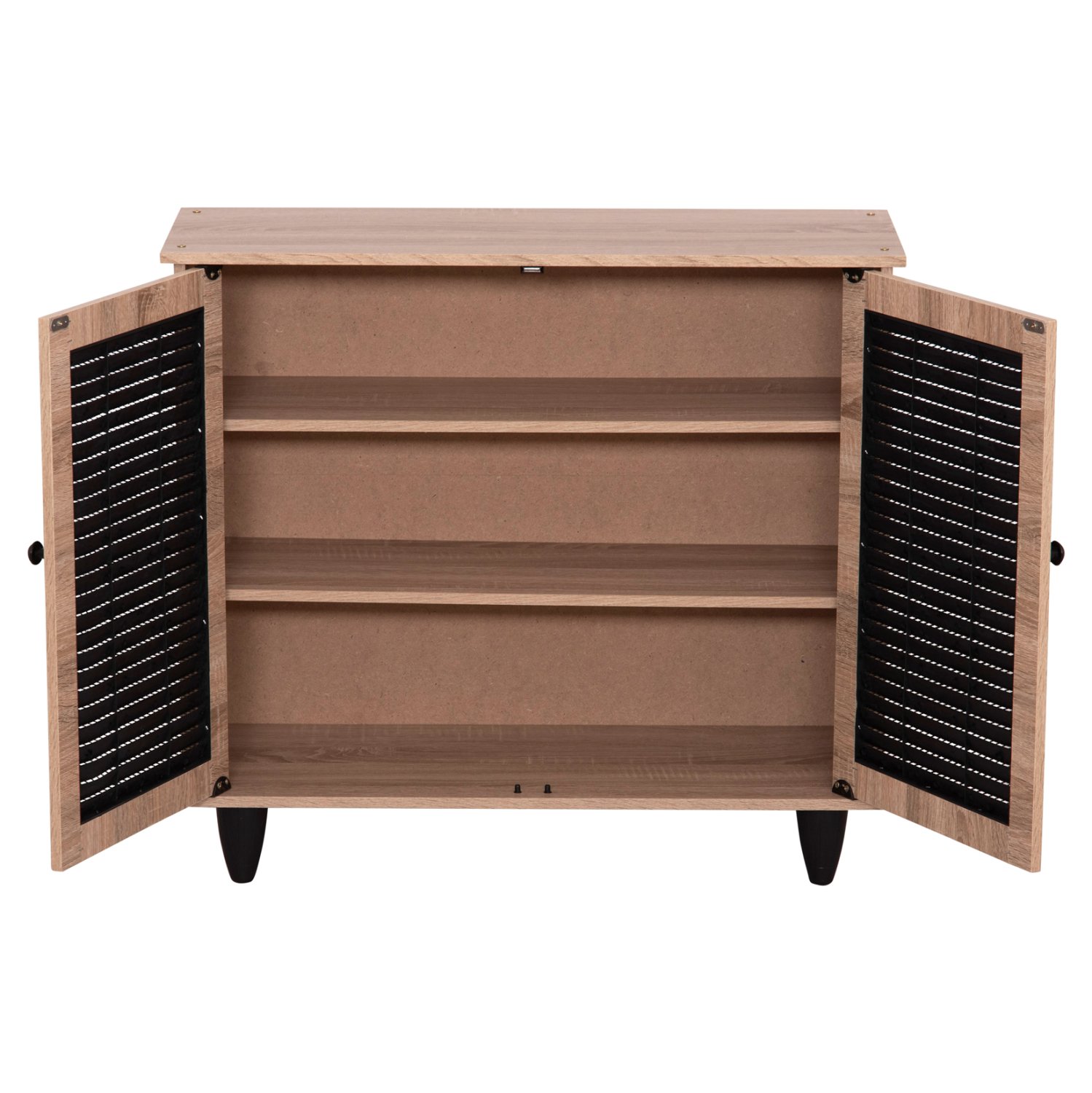 Η παπουτσοθήκη διαθέτει 2 ράφια, 3 επίπεδα αποθήκευσης και γρίλιες στις πόρτες για να αερίζονται τα παπούτσια σας.