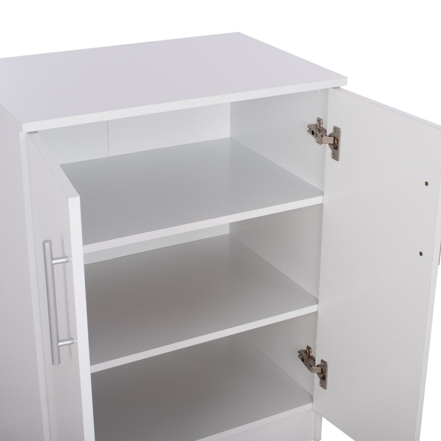 Διαθέτει δύο πόρτες και δύο εσωτερικά ράφια όπου δημιουργούν τρεις αποθηκευτικούς χώρους.