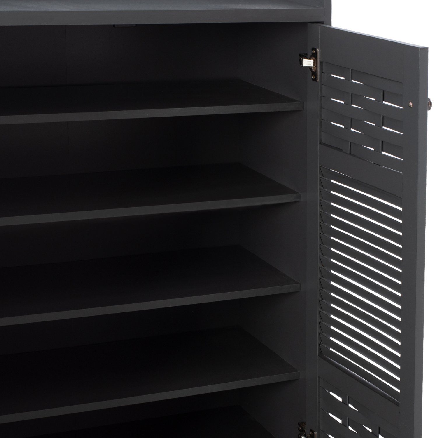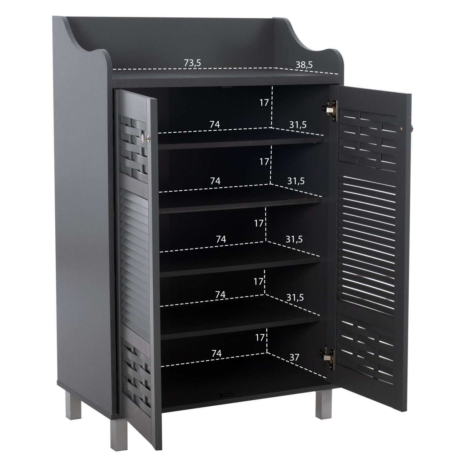 Παπουτσοθήκη- ντουλάπι σε λιτό-κλασικό σχεδιασμό, κατασκευασμένη από ανθεκτική μελαμίνη υψηλής ποιότητας, σε γκρι απόχρωση.