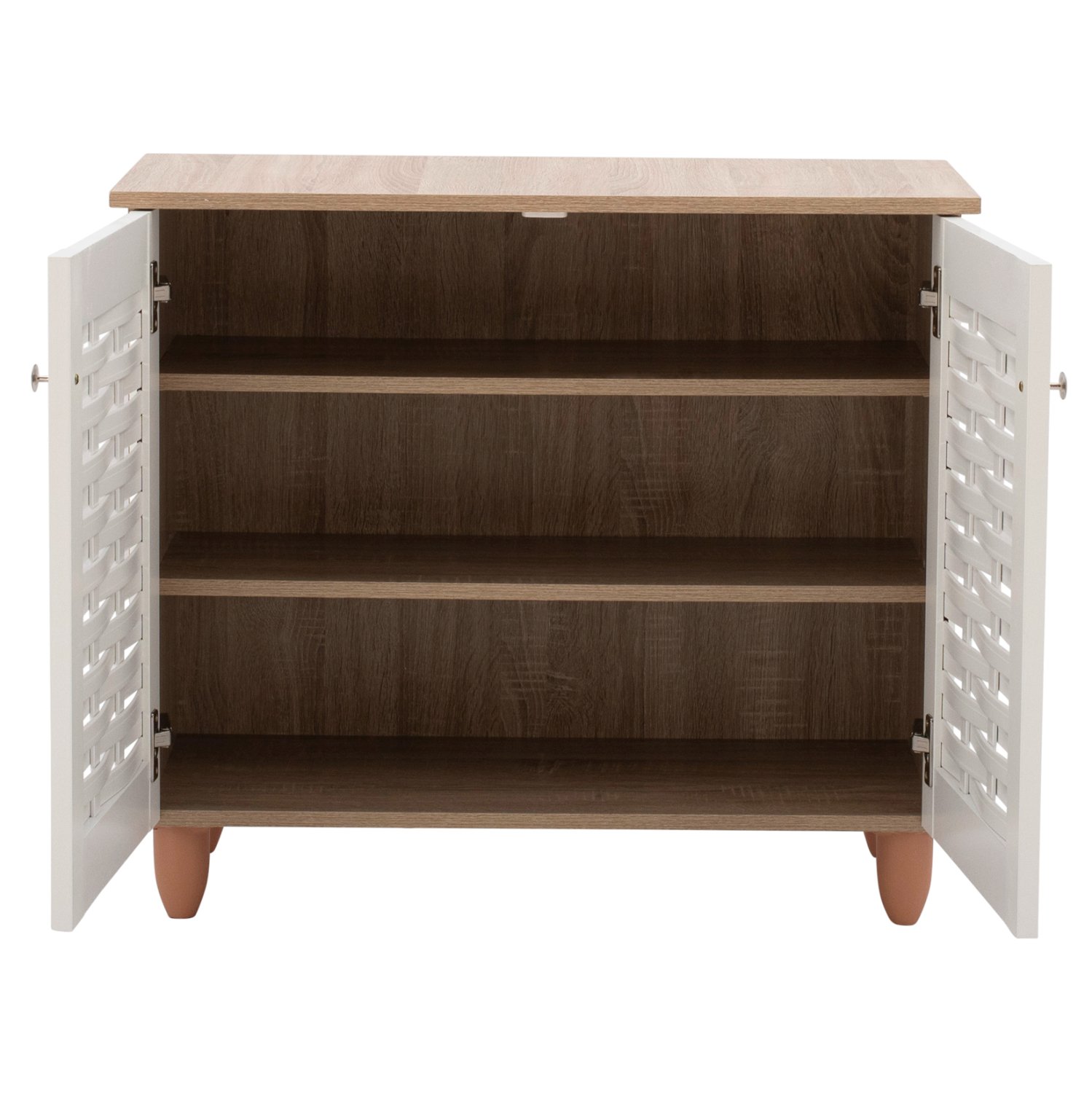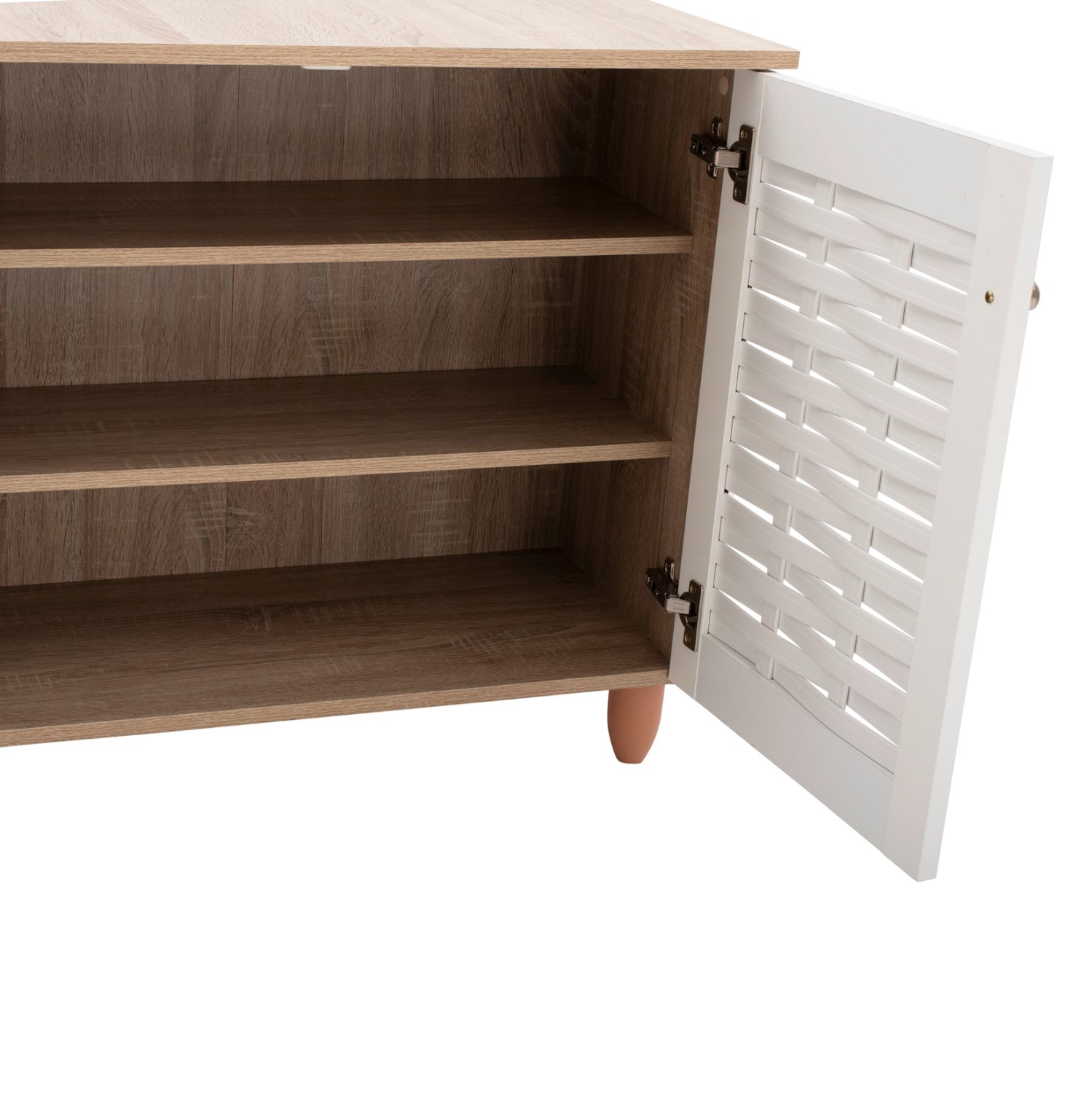 Η παπουτσοθήκη διαθέτει 2 ράφια, 3 επίπεδα αποθήκευσης και εσοχές στις πόρτες για να αερίζονται τα παπούτσια σας.