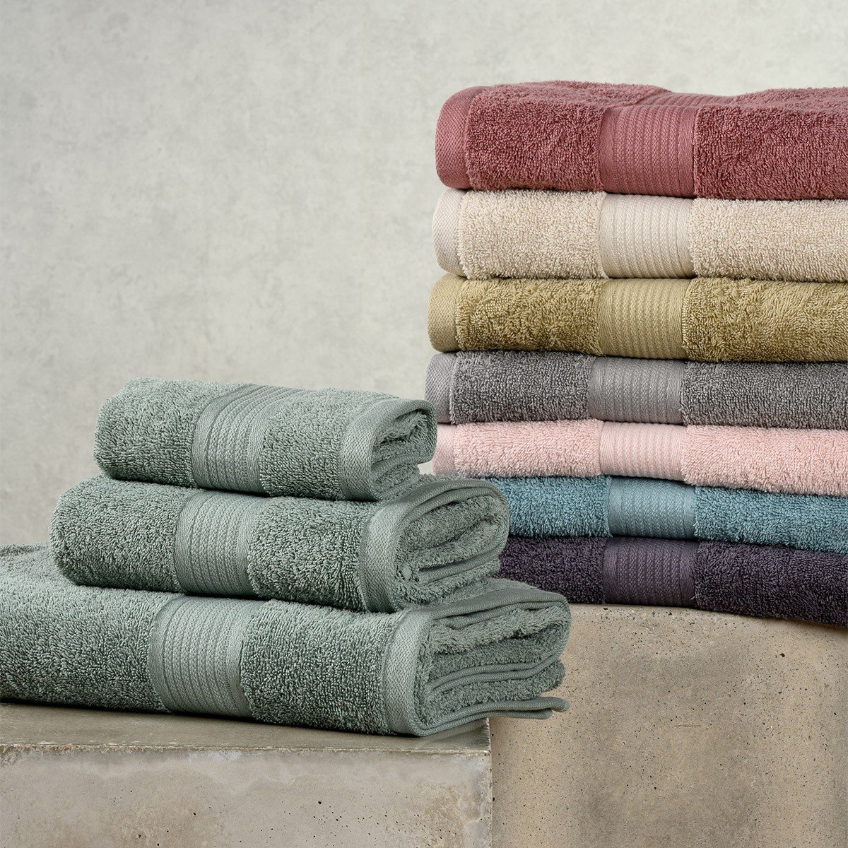 Πετσέτες σετ 3 τεμαχίων Kenzo με μπορντούρα. Κατασκευασμένες από 100% βαμβακερά νήματα 450gr/m², ιδιαίτερα απορροφητικές κι ανθεκτικές στη χρήση. Διατίθενται σε 6 μοντέρνες αποχρώσεις. Ιδανική επιλογή για κάθε μοντέρνο μπάνιο.