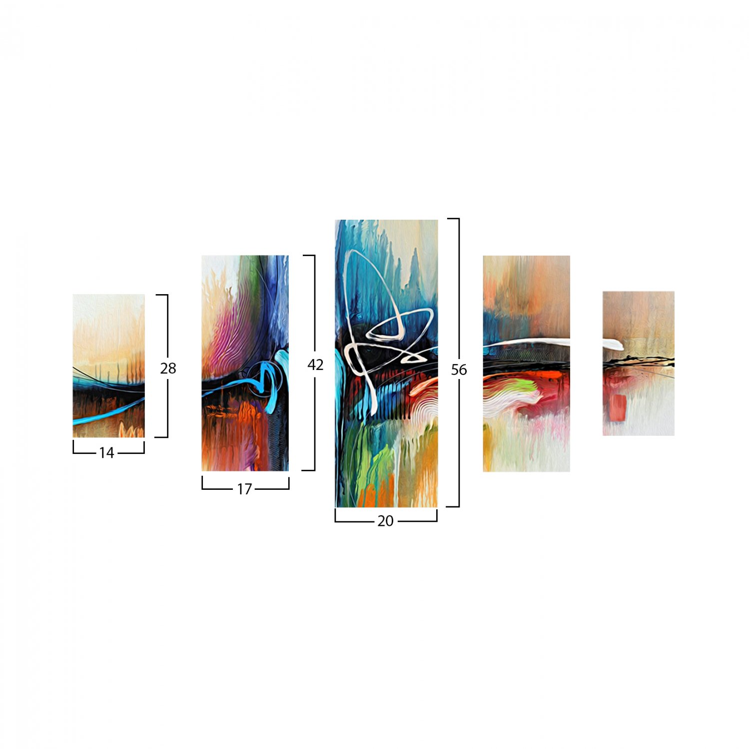 Διακοσμητικός πεντάπτυχος πίνακας σε τυπωμένο mdf σε σχέδιο abstract colors.