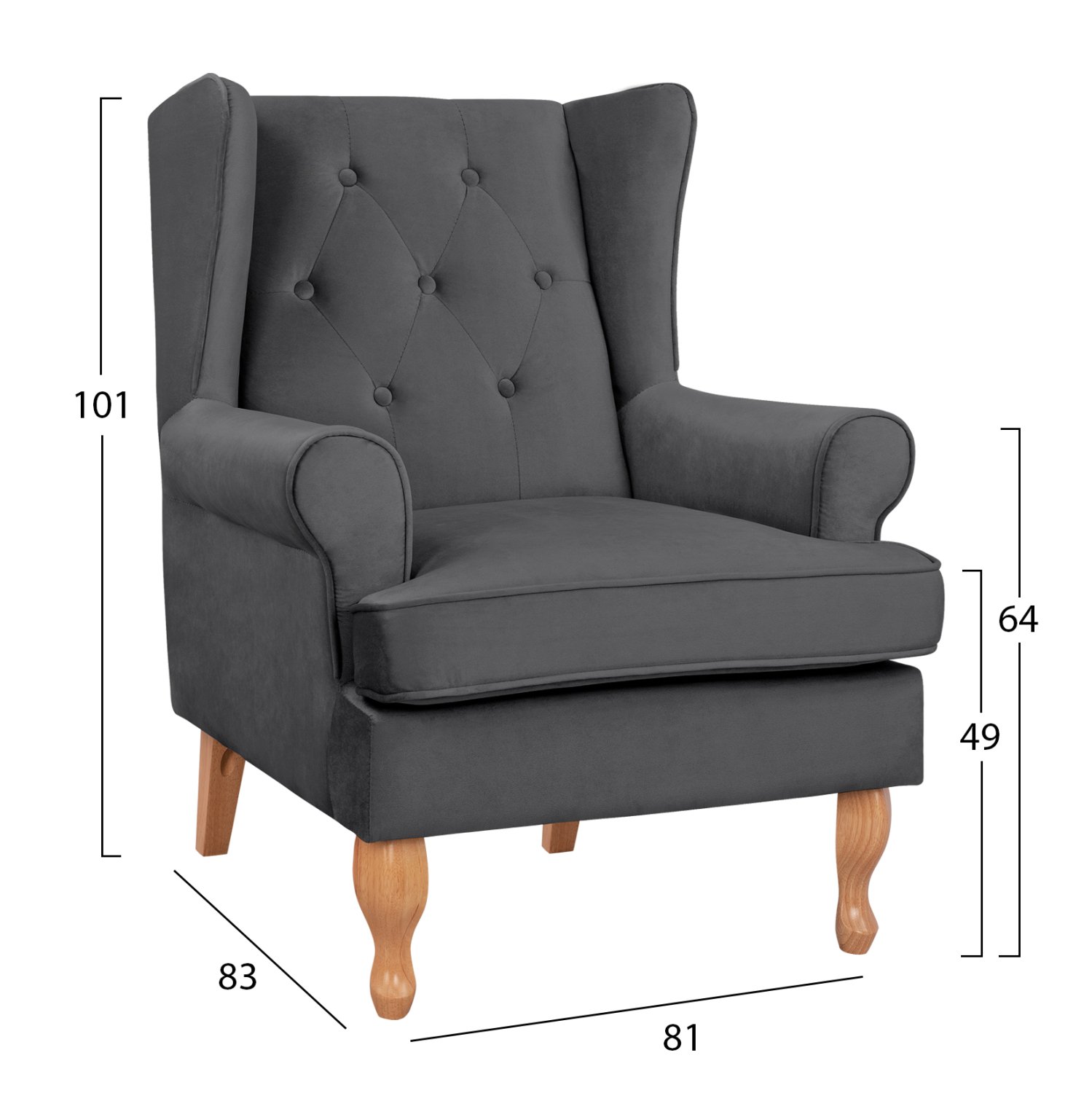 Σας παρουσιάζουμε την μπερζέρα BRANDON, σε ουδέτερο ΓΚΡΙ χρώμα με ξύλινα πόδια. Τα πόδια είναι σε φυσικό χρώμα ξύλου, και ιδιαίτερα τα εμπρός πόδια έχουν όμορφο σκαλιστό φινίρισμα. Η επένδυση της πλάτης έχει γίνει με τεχνοτροπία καπιτονέ που προσδίδει ιδιαίτερη ομορφιά στην μπερζέρα σε συνδυασμό, φυσικά, με το υψηλής ποιότητας βελούδινο ύφασμα. Τα μπράτσα και το κάθισμα είναι ιδιαιτέρως αναπαυτικά ανταποκρινόμενα στον χαρακτήρα της πολυθρόνας.
