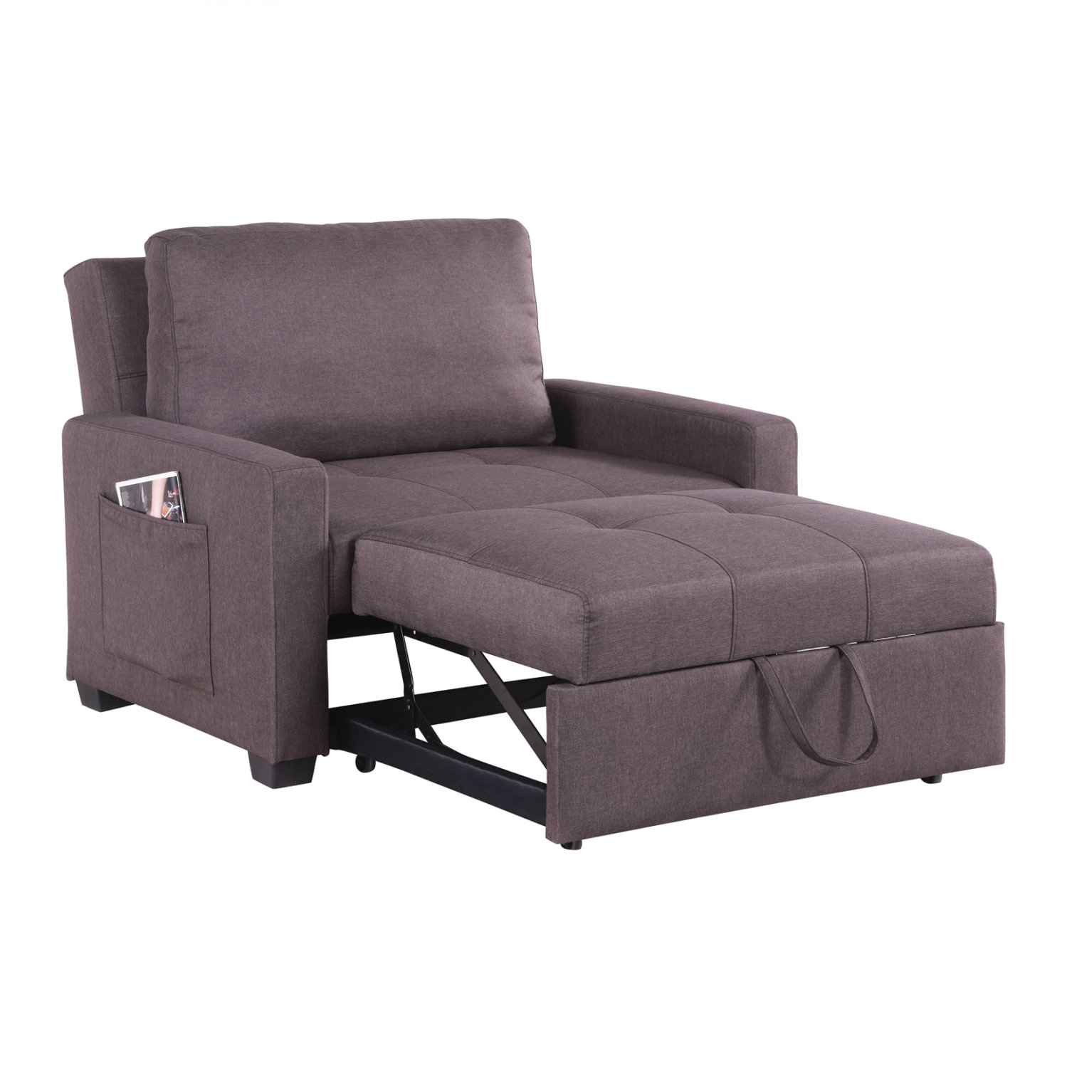 Η πολυθρόνα-κρεβάτι ΚΑΝΝΑ είναι η επιτομή της πρακτικότητας και του όμορφου στυλ. Πρόκειται για μια κοντή πολυθρόνα επενδυμένη με ΚΑΦΕ ποιοτικό ύφασμα και με φαρδύ κάθισμα. Τα μπράτσα είναι κοντά με πρακτικές θήκες για μικροπράγματα στην εξωτερική τους πλευρά, και το αναπαυτικό μαξιλάρι στην πλάτη ολοκληρώνει την σύνθεση. Το στοιχείο που την κάνει να ξεχωρίζει, όμως, είναι ότι με μια απλή κίνηση μπορεί να μετατραπεί σε κρεβάτι προσφέροντας μια ποιοτική λύση για απρόσμενες διανυκτερεύσεις, ή ακόμα και ως δεύτερο κρεβάτι σε σπίτια με περιορισμένο χώρο, όπως φοιτητικά σπίτια.
