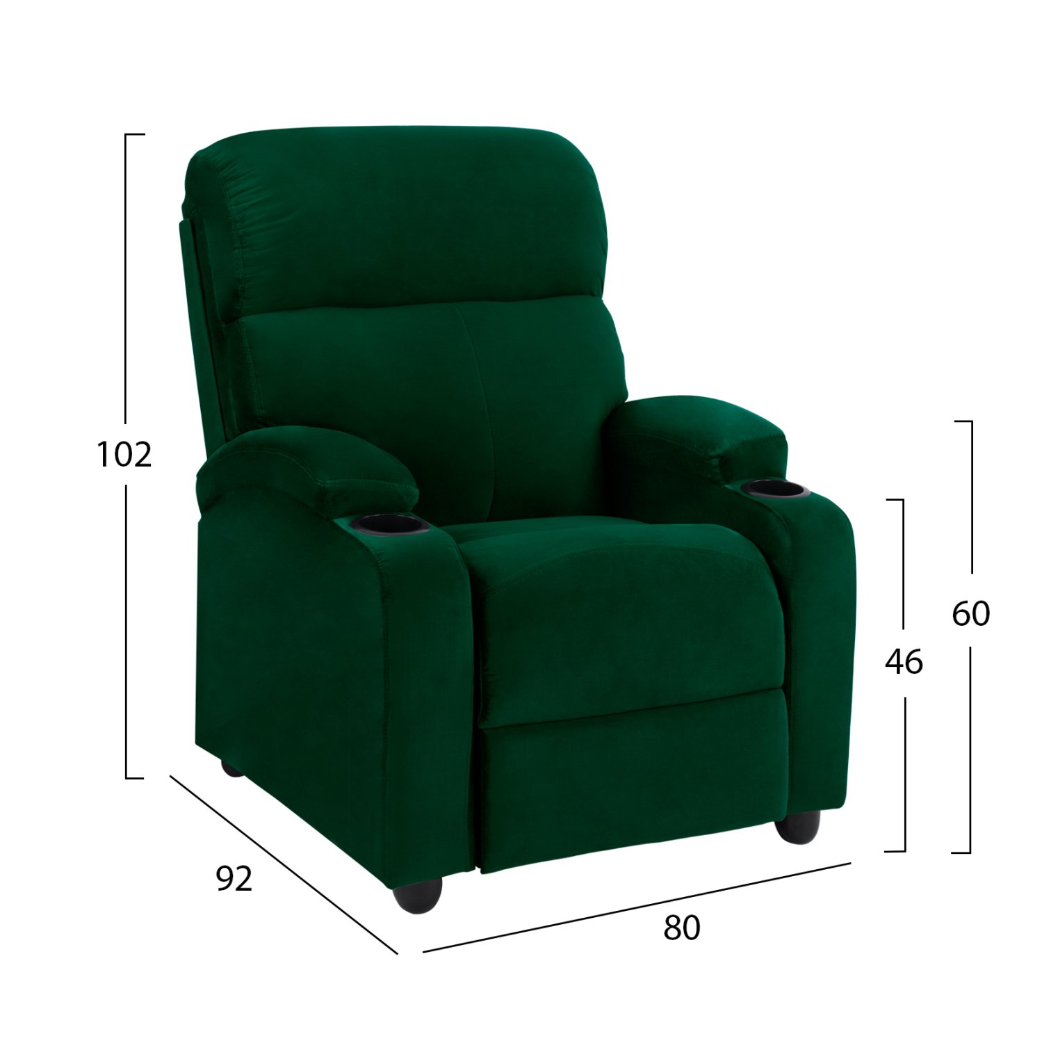 Η ΗΜ0122.13 με επένδυση από ΚΥΠΑΡΙΣΣΙ βελούδο, είναι μια πολυθρόνα που αποτελεί το όνειρο για πολλούς. Οπτικά, γεμίζει τις αισθήσεις όλων με τις πλούσιες διαστάσεις και τα αναπαυτικά μαξιλάρια της. Η πλάτη είναι ψηλή ενώ το κάθισμα βαθύ και τα μπράτσα σε προκαλούν να απλώσεις τα χέρια σου επάνω στα πλούσια μαξιλάρια τους. Επιπλέον, στα 2 μπράτσα υπάρχουν ποτηροθήκες για να μην σκοτίζεστε που θα αφήσετε τον καφέ ή το ρόφημά σας. Και όταν γυρνάτε από την δουλειά και θέλετε να χαλαρώσετε μπροστά στην τηλεόρασή σας, ή να διαβάσετε την εφημερίδα σας, ή το αγαπημένο σας βιβλίο μπροστά στο παράθυρο, τότε ο μηχανισμός relax ρίχνει την πλάτη και σε συνδυασμό με το πτυσσόμενο υποπόδιο θα σας προσφέρει ανεπανάληπτες στιγμές χαλάρωσης.
