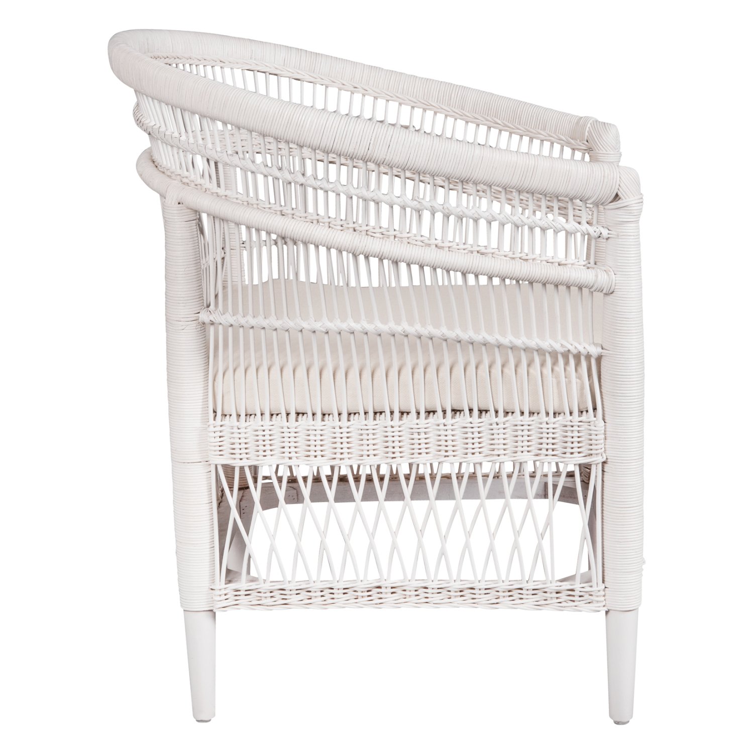 Η πολυθρόνα MALAWI είναι πανέμορφη! Μοντέρνα, άνετη και σταθερή με κυρίαρχο χρώμα το ΛΕΥΚΟ. Το ημικυκλικό κάθισμα της πολυθρόνας είναι άνετο και διαθέτει μαξιλάρι μέτριας σκληρότητας ενώ η πολυθρόνα δίνει την αίσθηση ότι αγκαλιάζει το σώμα. Αυτό όμως που τραβάει τα βλέμματα σε αυτή την πολυθρόνα είναι ότι η πλάτη με τα μπράτσα αποτελούν μια συνεχόμενη κατασκευή με επένδυση από RATTAN που δίνει μια αίσθηση μοναδικότητας στην πολυθρόνα!