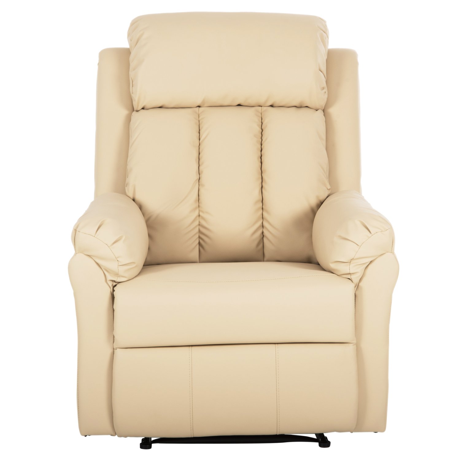 Η HAPPER με επένδυση από ΕΚΡΟΥ PU leather, είναι μια όμορφη πολυθρόνα που θα σας ενθουσιάσει. Οπτικά, γεμίζει τις αισθήσεις όλων με τις πλούσιες διαστάσεις και τα αναπαυτικά μαξιλάρια της. Η πλάτη είναι ψηλή ενώ το βαθύ κάθισμα και τα μπράτσα σε προκαλούν να απλώσεις τα χέρια σου επάνω στα πλούσια μαξιλάρια τους. Και όταν γυρνάτε από την δουλειά και θέλετε να χαλαρώσετε μπροστά στην τηλεόρασή σας, ή να διαβάσετε την εφημερίδα σας, ή το αγαπημένο σας βιβλίο μπροστά στο παράθυρο ή το τζάκι, τότε ο μηχανισμός relax με τον μοχλό στην εξωτερική πλευρά του μπράτσου σε συνδυασμό με το πτυσσόμενο υποπόδιο θα σας προσφέρει ανεπανάληπτες στιγμές χαλάρωσης.