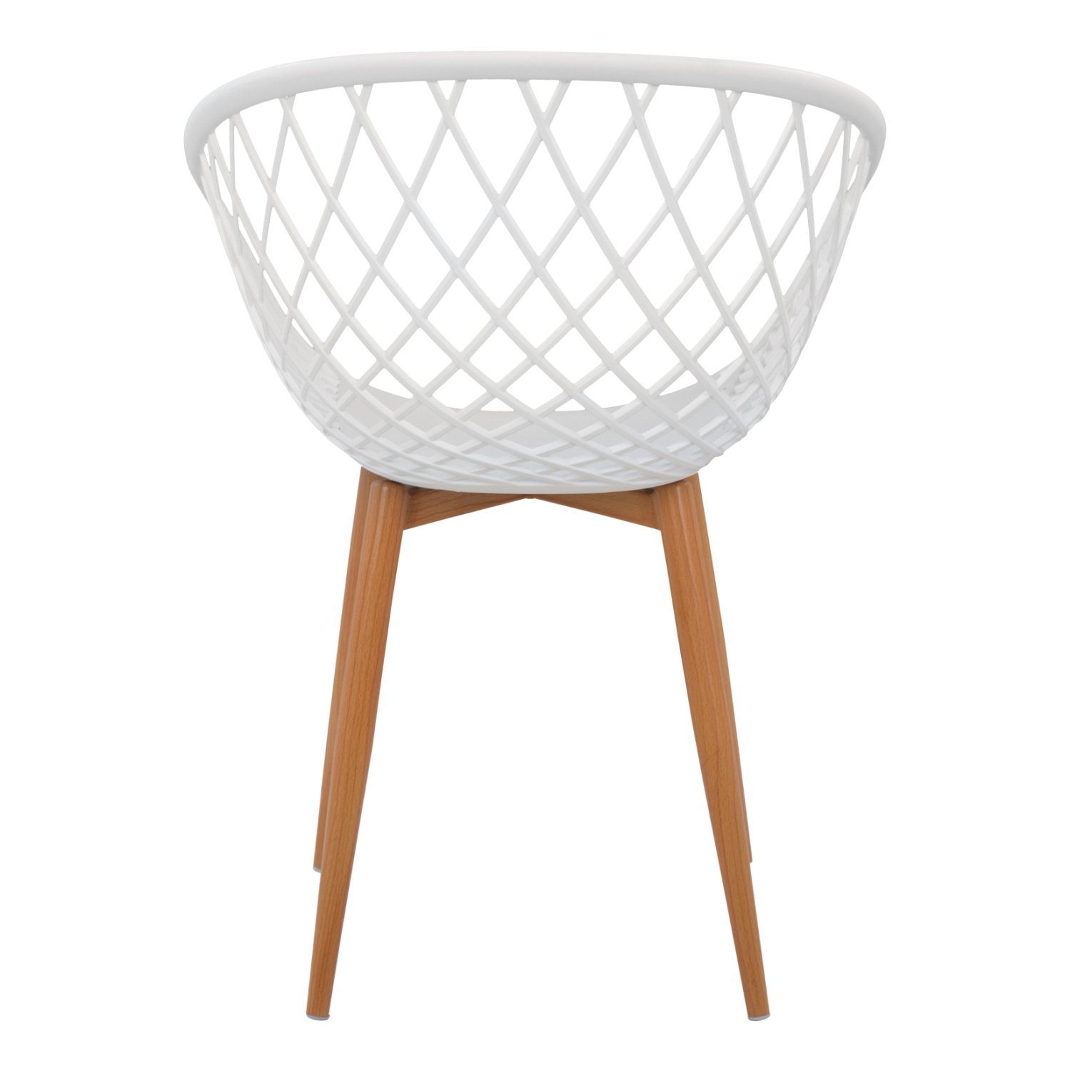 ενώ το κάθισμα της καρέκλας είναι από πολυπροπιλένιο σε λευκή απόχρωση.