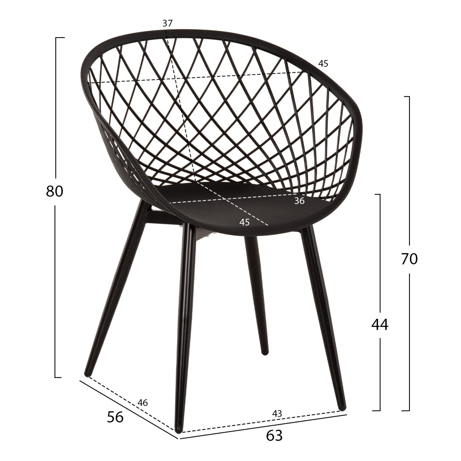 Η πολυθρόνα ARIADNE είναι ποιοτική και κομψή στην όψη, και σίγουρα τραβάει τα βλέμματα. Η πλάτη και το κάθισμα είναι ένα μονοκόμματο χυτό κομμάτι πολυπροπυλενίου σε ΜΑΥΡΟ χρώμα. Η πλάτη, μάλιστα, έχει «δικτυωτό» σχήμα, πράγμα που την κάνει ευχάριστη και ελαφριά. Η βάση του καθίσματος και τα πόδια είναι μεταλλικά σε ΜΑΥΡΟ χρώμα. Όλη η κατασκευή είναι ελαφριά και άνετη, και θα γίνει το αγαπημένο κάθισμα σε όποιο χώρο κι αν τοποθετηθεί χάρη στην πρακτικότητά του. Ιδανική επιλογή και για επαγγελματική χρήση, όπως σε catering κτλ.