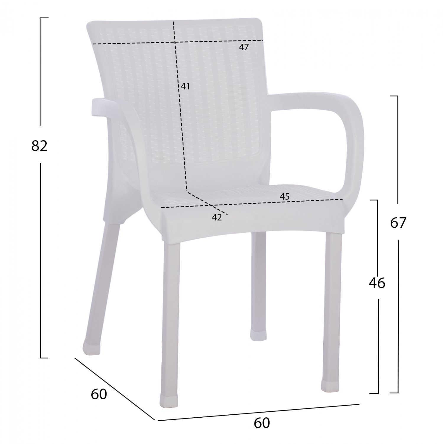 Πολυθρόνα πολυπροπυλενίου σε λευκή απόχρωση 60x60x82 cm