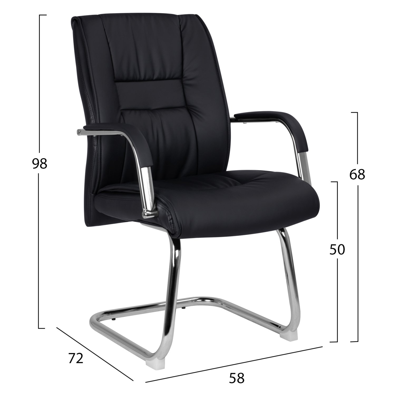 Καρέκλα συνεργασίας με μπράτσα, από υψηλής ποιότητας PU σε μαύρη απόχρωση και χρωμιωμένο σκελετό.