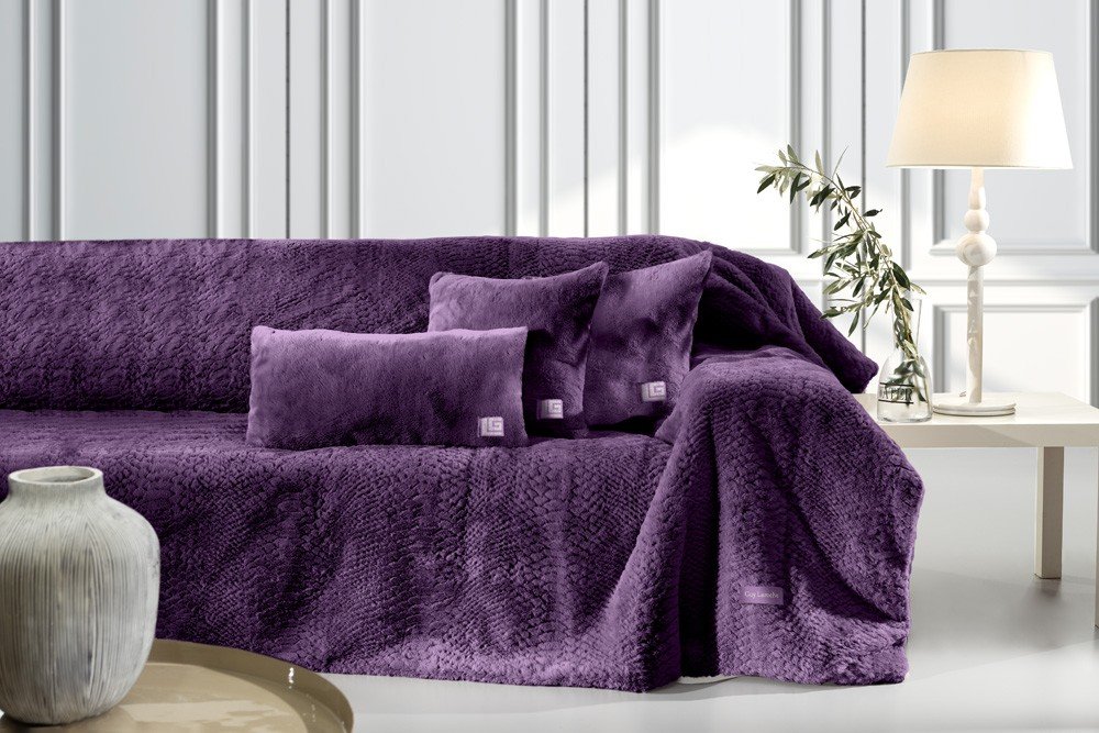 Σετ Ριχτάρι Γούνινο Πολυθρόνας 130×170 & Μαξιλαροθήκη 48×48 Διακόσμησης Guy Laroche Crusty Aubergine