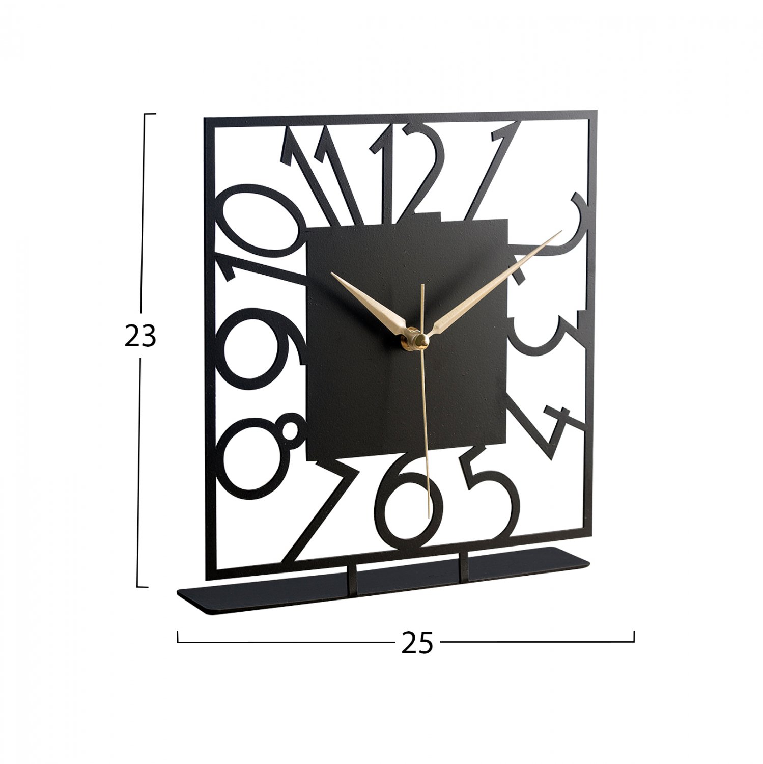 Ρολόι επιτραπέζιο σε μαύρη απόχρωση με χρυσές λεπτομέρειες στους δείκτες.