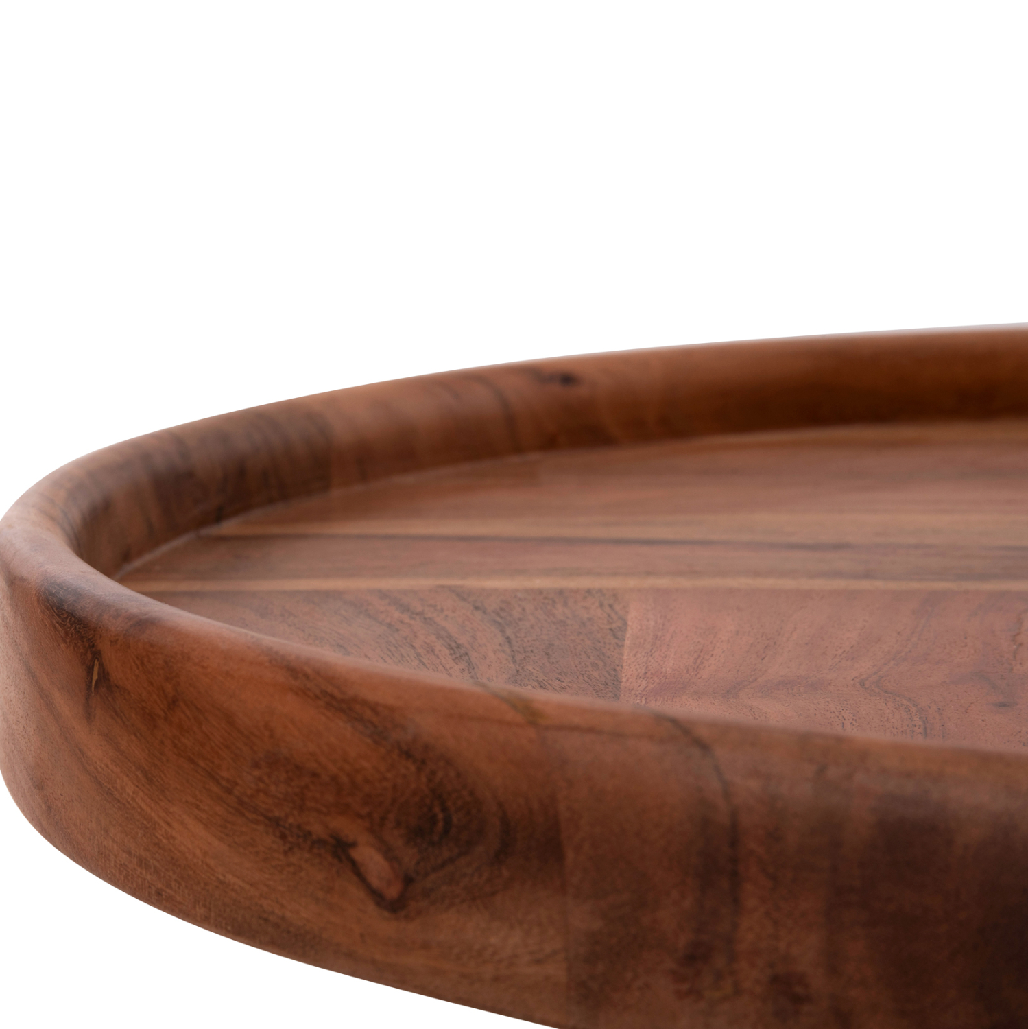 Τα RAJJEH είναι στρογγυλά τραπέζια για το σαλόνι σε φυσικό χρώμα ξύλου. Και τα 2 στηρίζονται σε μια ξύλινη κεντρική κυλινδρική κολώνα πάνω στην οποία μοντάρεται η στρογγυλή επιφάνειά τους από το ίδιο ποιοτικό μασίφ ξύλο. Πρόκειται για τραπέζια με ελαφρώς υπερυψωμένη την περίμετρο της επιφάνειας.