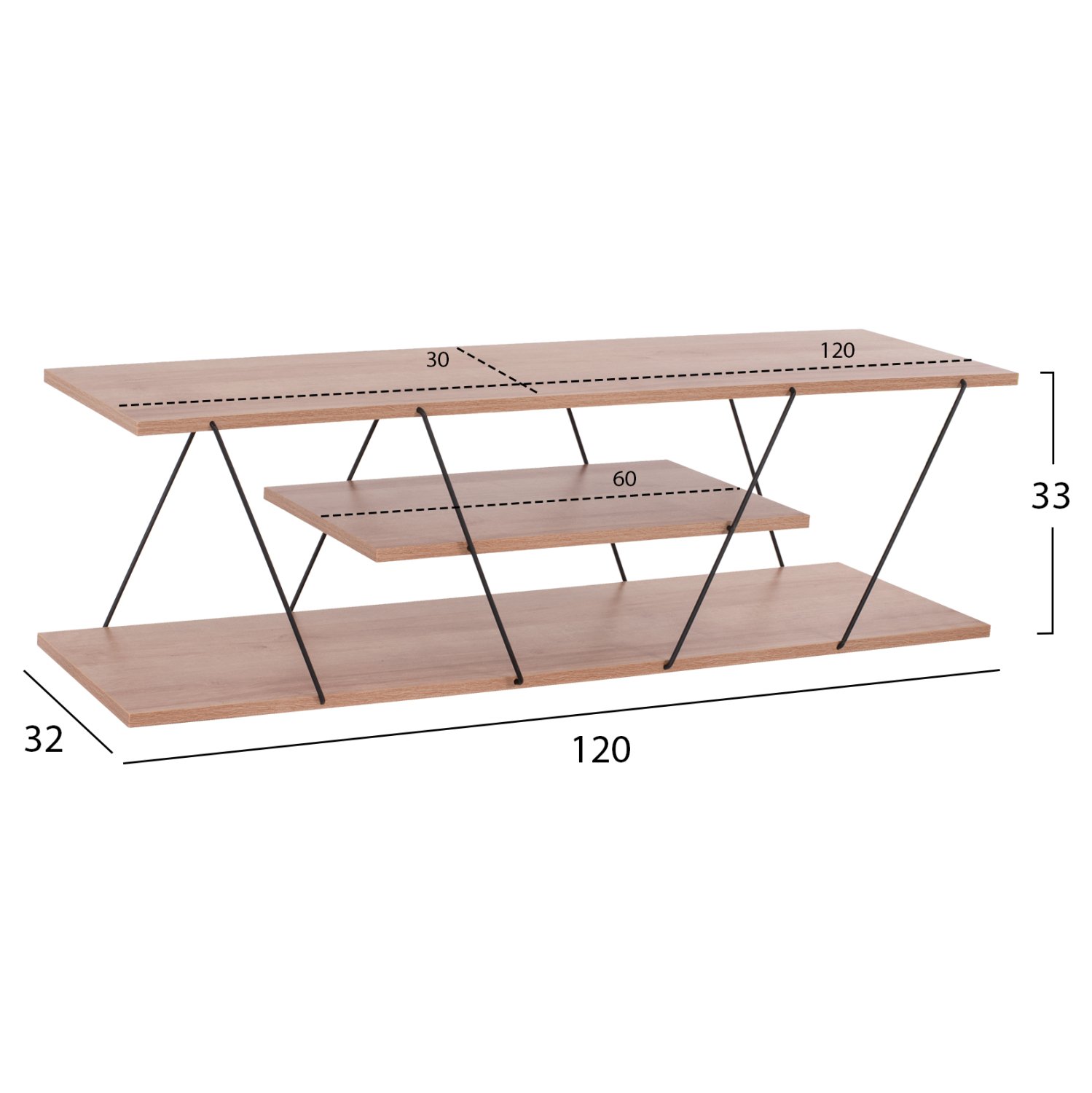 HM8922.11- Έπιπλο TV σε από μελαμίνη σε φυσικο χρώμα με μεταλλικές μαύρες βέργες.