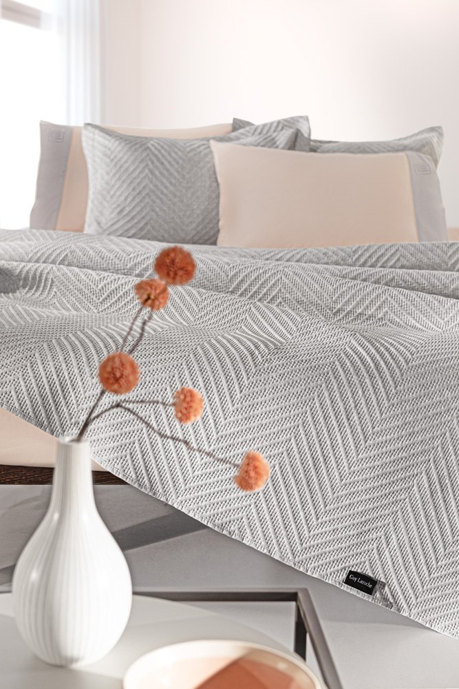 Έντονα και παλ χρώματα παντρεύονται με εξαιρετικής ποιότητας πρώτες ύλες για να δημιουργήσουν τα κουβερλί της Guy Laroche. Με εξωτερικό περίβλημα από αντιαλλεργικό fine microfiber θα σας κρατήσουν ζεστούς τις δροσερές μέρες της Άνοιξης και του Φθινοπώρου.