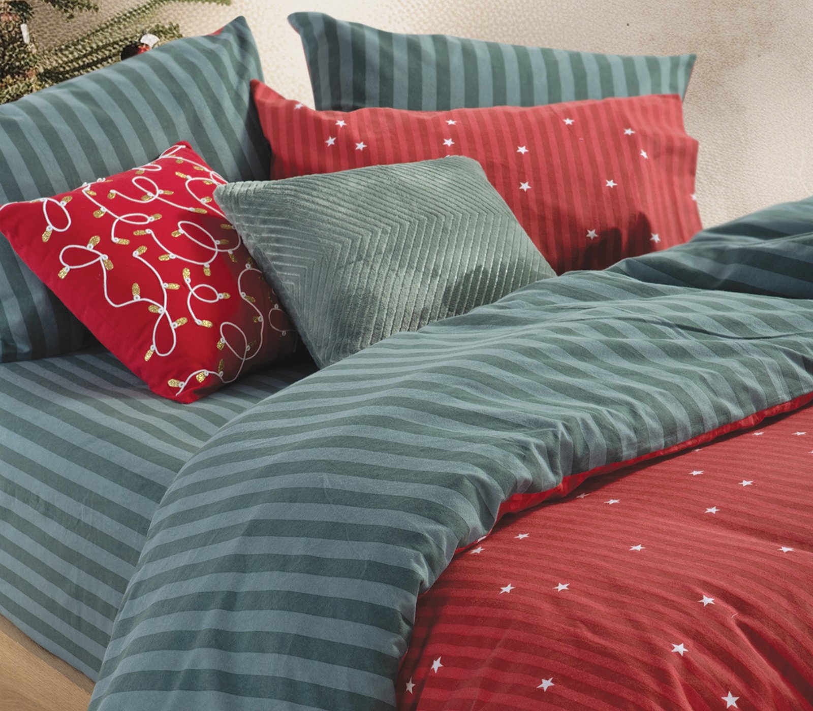 Σετ Παπλωματοθήκη Φανελένια Μονή 160×230 Nef Nef Straight To Christmas Red-Green