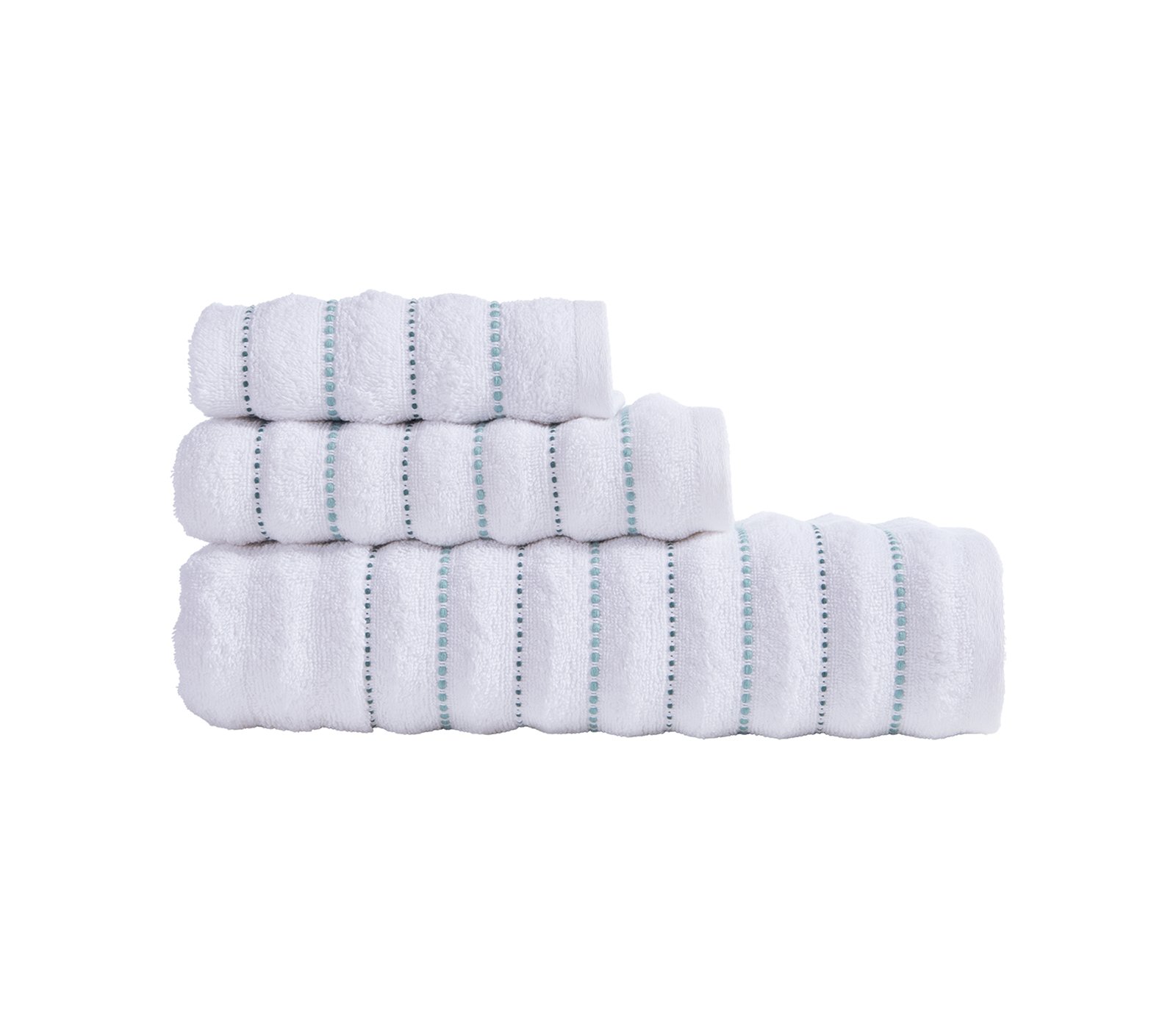 Το σετ περιλαμβάνει μια πετσέτα χεριών 30x50cm, μια πετσέτα προσώπου 50x90cm και μια πετσέτα μπάνιου 70x140cm.