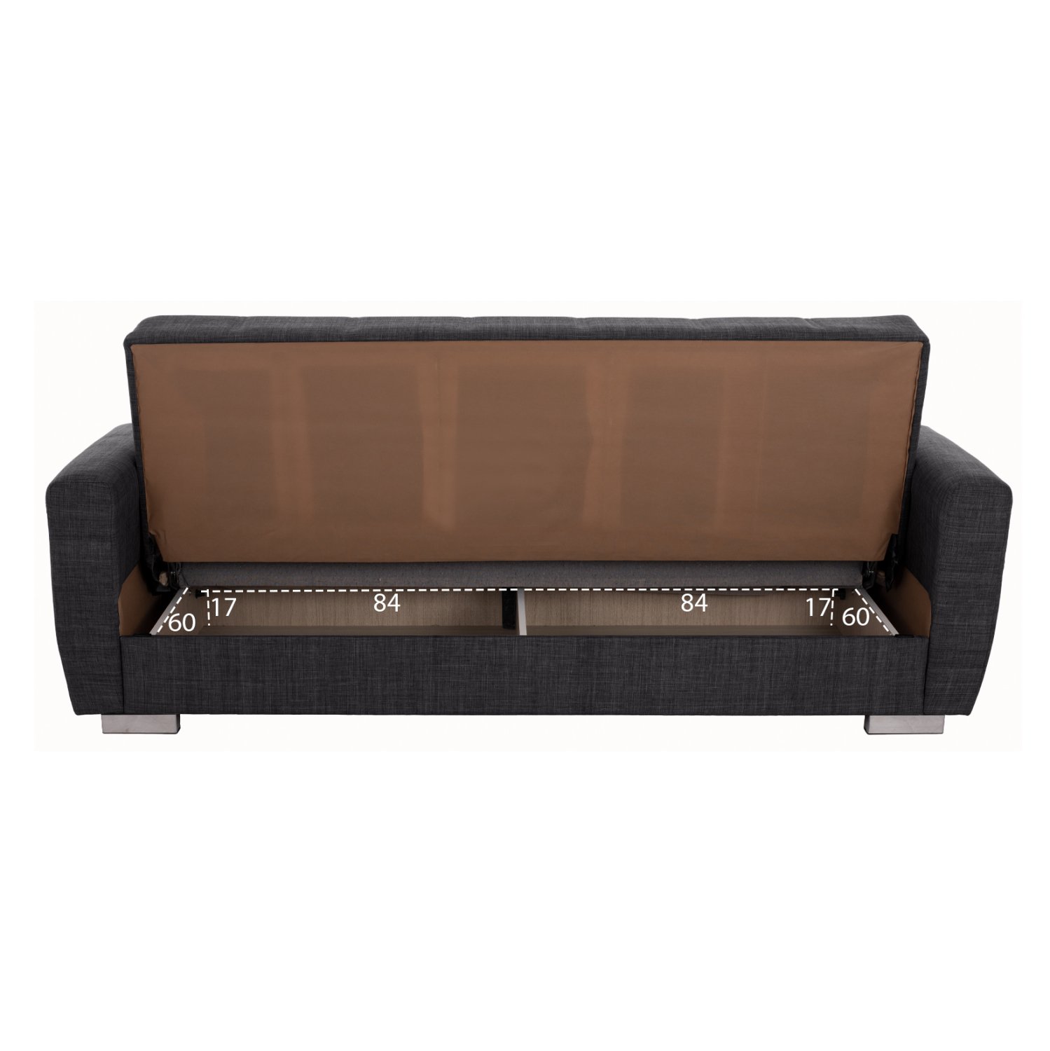 Το κύριο χαρακτηριστικό τους, όμως, είναι ότι πέφτει η πλάτη και μετατρέπονται σε ένα άνετο κρεβάτι για έκτακτες περιπτώσεις, μέσω ενός εύχρηστου μηχανισμού «κλικ-κλακ». Συνέπεια αυτού, βέβαια, είναι και η ύπαρξη αποθηκευτικού χώρου κάτω από το κάθισμα των καναπέδων, ο οποίος πάντα είναι χρήσιμος, ειδικά σε φοιτητικά σπίτια. Τέλος, τα πόδια τους είναι φαρδιά και χαμηλά δίνοντας στιβαρότητα σε όλη την κατασκευή.