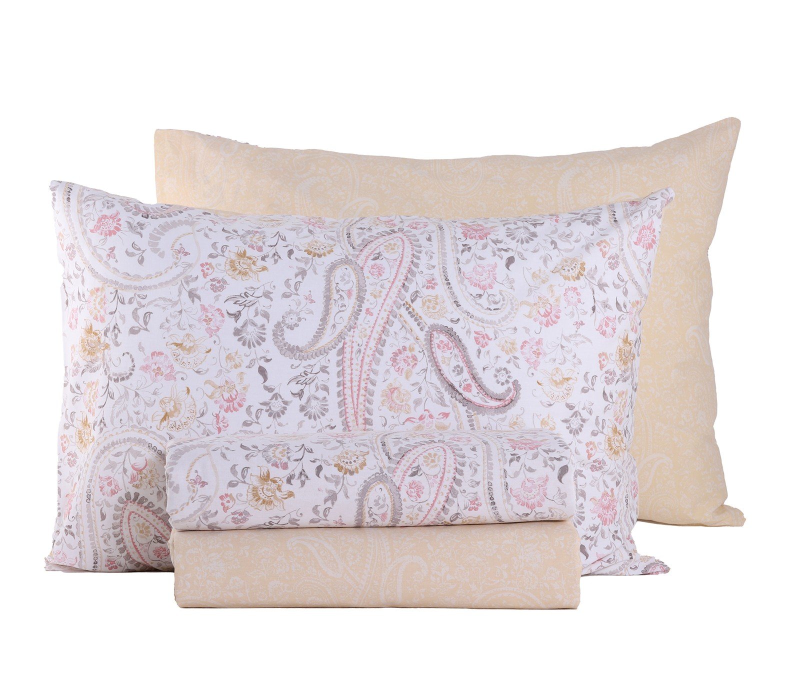 Το σετ περιλαμβάνει ένα πανωσέντονο και ένα κατωσέντονο διάστασης 240x260cm και δυο μαξιλαροθήκες 52x72cm.
