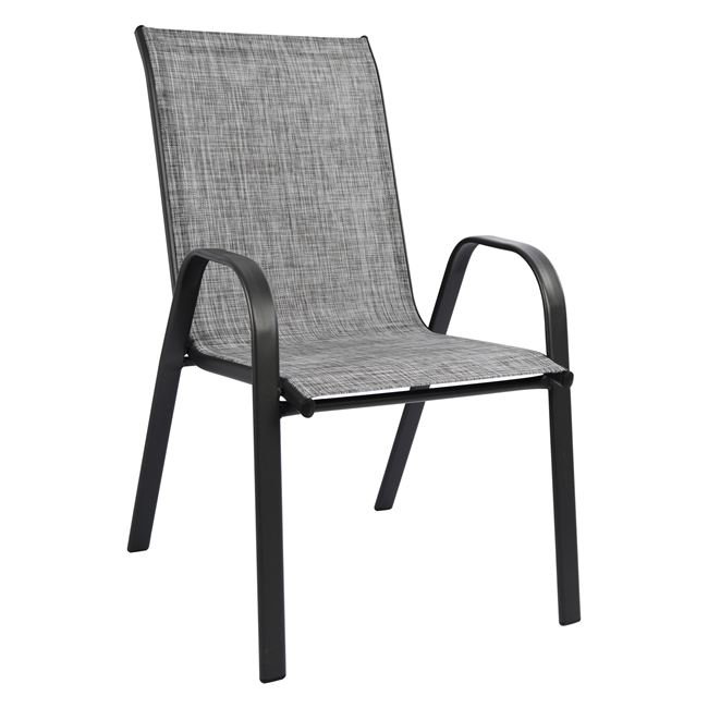 ‘Εξι πολυθρόνες εξωτερικού χώρου από μεταλλικό σκελετό σε γκρι χρώμα με textilene 2×1 μεγάλης αντοχής σε ήλιο και βροχή.