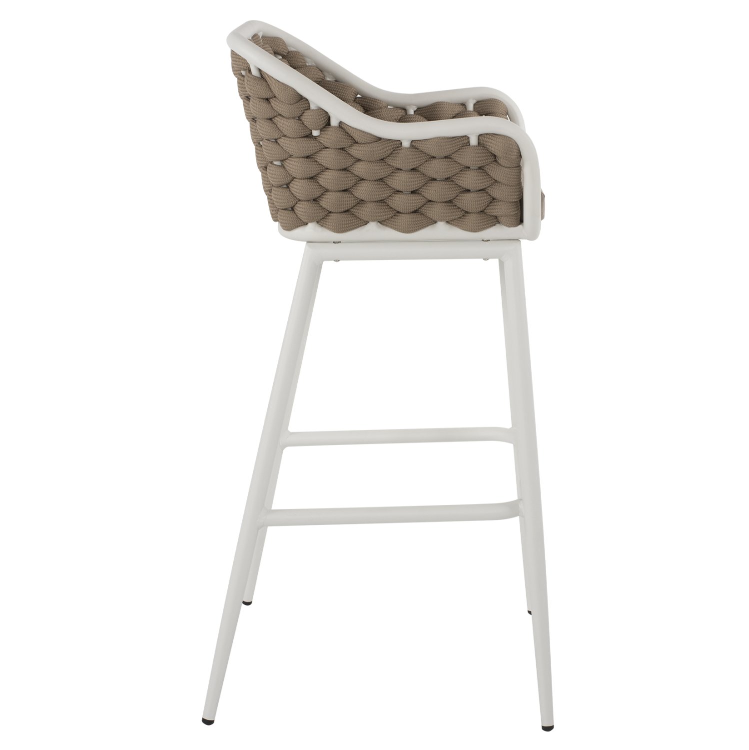 Το σκαμπό HM5862.02, κυρίως για επαγγελματική χρήση, είναι αυτό που ψάχνετε για ένα τέτοιο έπιπλο! Μοντέρνο, άνετο και σταθερό! Η διχρωμία του ΛΕΥΚΟΥ σκελετού με την ΜΠΕΖ επένδυση από σχοινί σε όλη την πλάτη είναι μοναδική. Η πλάτη με τα μπράτσα αποτελούν ένα ενιαίο κομμάτι με κάθετες βέργες που είναι πλεγμένες με σχοινί και αγκαλιάζουν το σώμα, ενώ η πλάτη είναι ψηλότερη από τα μπράτσα. Ο σκελετός είναι ψηλός και τα πόδια ενώνονται μεταξύ τους με μια δοκό που λειτουργεί ως υποπόδιο. Το μαξιλάρι του καθίσματος είναι και αυτό σε μπεζ χρώμα και είναι άνετο. Το σκαμπό αυτό θα αναβαθμίσει αισθητικά τον χώρο που θα το τοποθετήσετε και θα τραβήξει τα βλέμματα χάρη στα υλικά κατασκευής του.