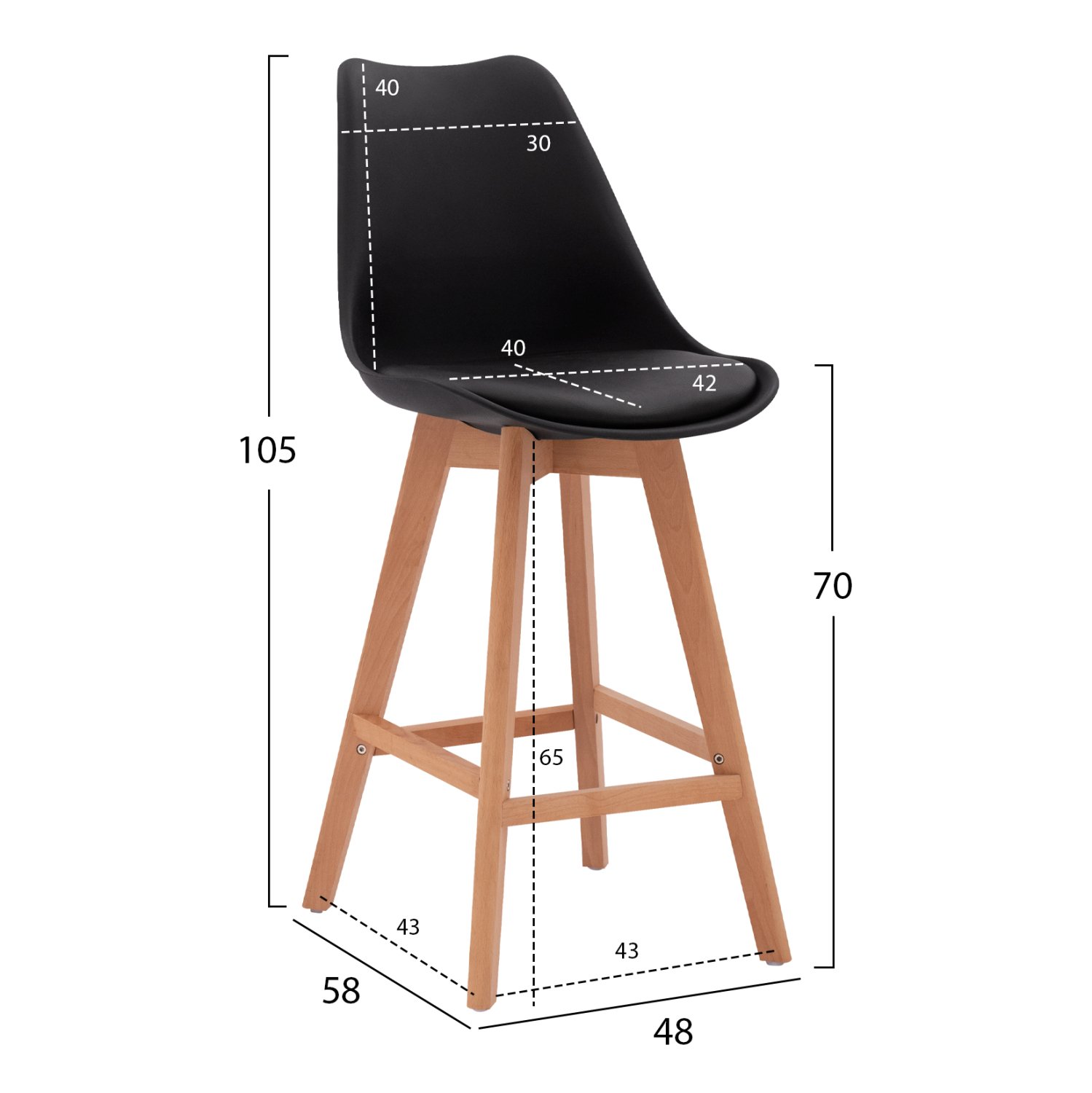 Το σκαμπό VEGAS είναι κατασκευασμένο από ξύλο σε φυσική και πολυπροπυλένιο σε μαύρη απόχρωση,