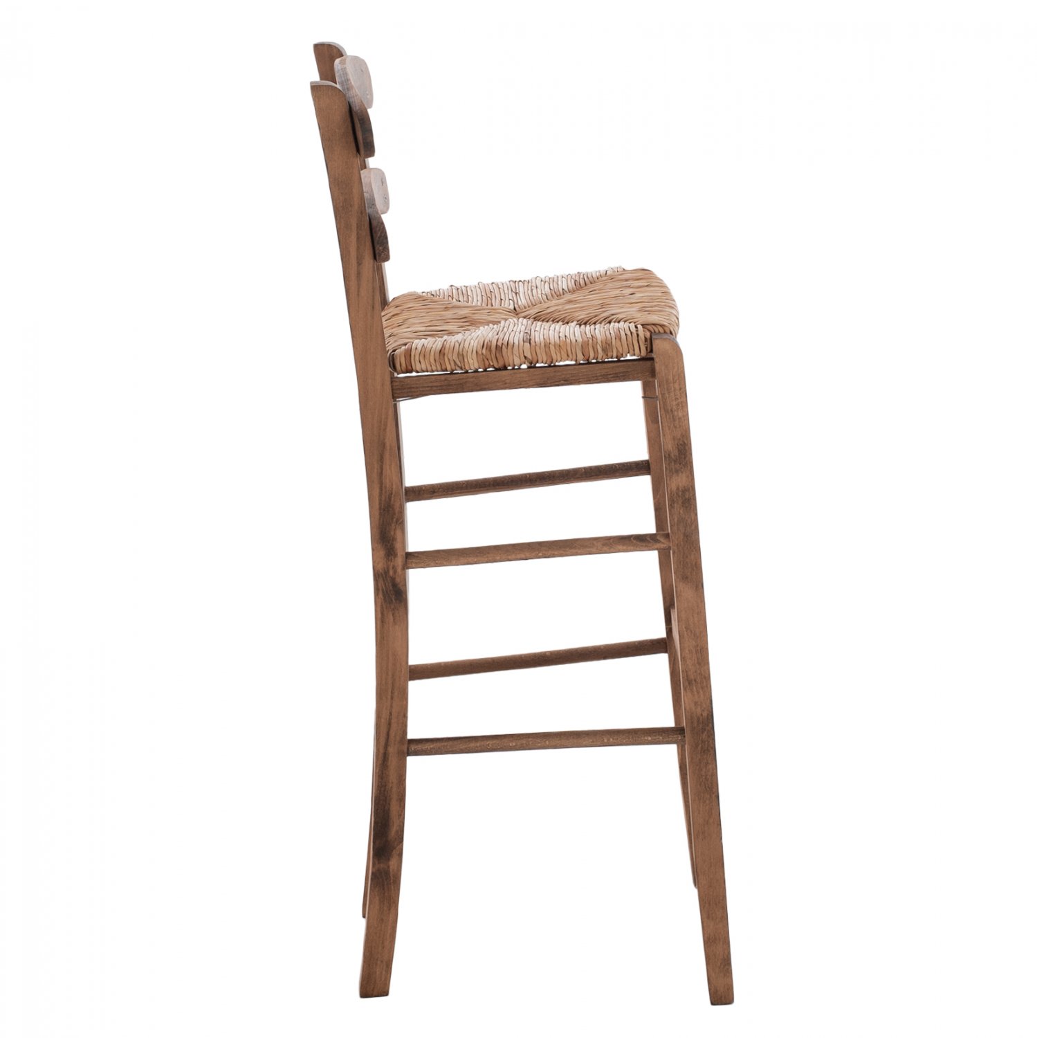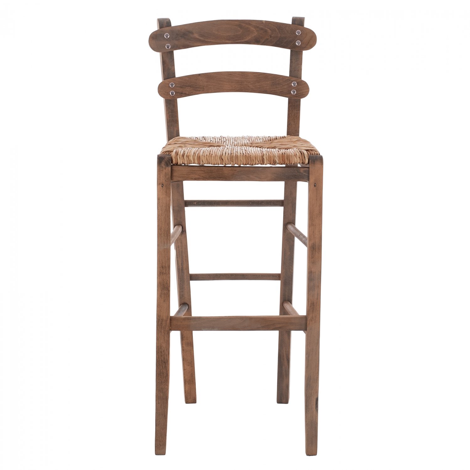 Σκαμπό καφενείου καρφωτό από μασίφ ξύλο φουρνιστής οξιάς εμποτισμού καρυδί και ψάθα.