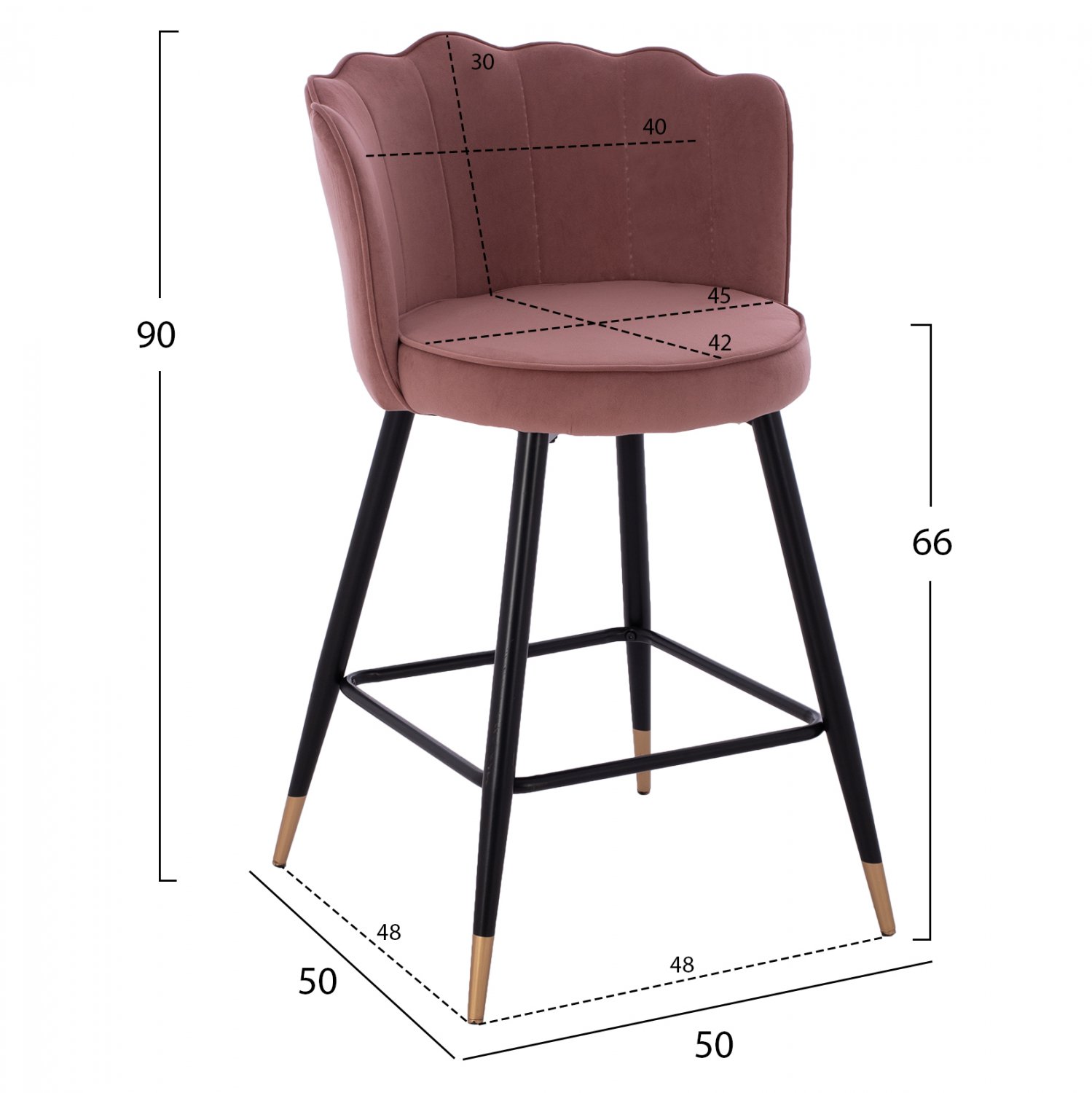 Σκαμπό μεσαίου ύψους από βελούδινο ύφασμα σε σάπιο μήλο και μαύρο σκελετό με χρυσές λεπτομέρειες 50x50x90 εκ.