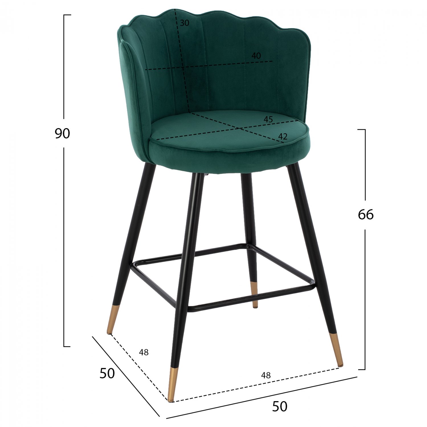 Σκαμπό μεσαίου ύψους από βελούδινο ύφασμα σε κυπαρισσί και μαύρο σκελετό με χρυσές λεπτομέρειες 50x50x90 εκ.