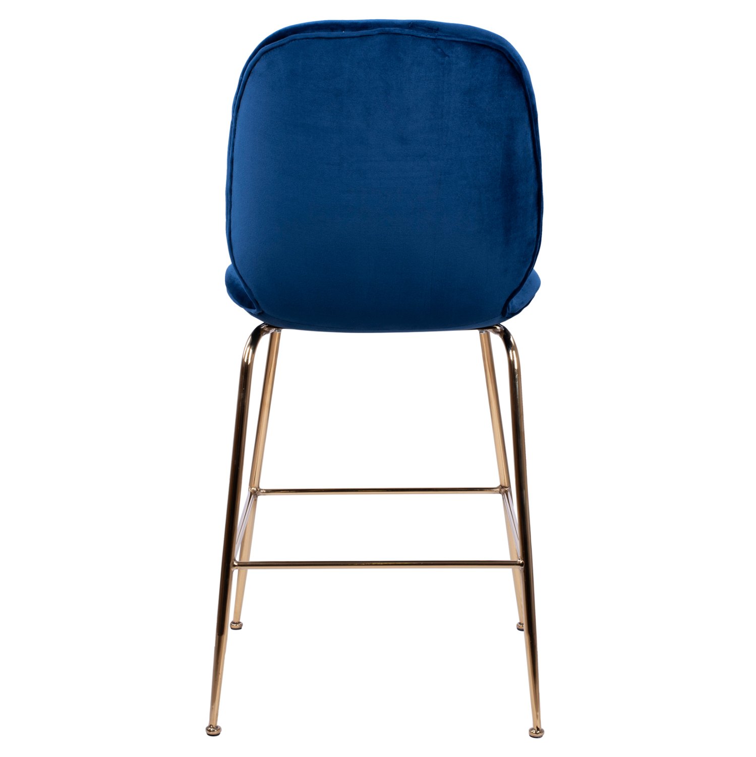 Σκαμπό μεσαίου ύψους NORA κατασκευασμένο από μέταλλο σε χρυσή απόχρωση, και βελούδο σε μπλε χρώμα,