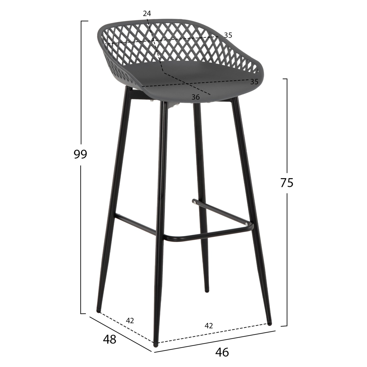 Το σκαμπό-μπαρ AVAYA είναι αυτό ακριβώς που ψάχνετε. Το κάθισμα είναι από μονοκόμματο πολυπροπυλένιο σε ΓΚΡΙ χρώμα με σχετικά χαμηλή πλάτη η οποία έχει ένα κλασικό «διχτυωτό» σχέδιο. Τα πόδια είναι μεταλλικά σε ΜΑΥΡΟ χρώμα και ενώνονται με ένα πρακτικότατο υποπόδιο. Όλη η κατασκευή είναι ελαφριά και άνετη, και θα γίνει το αγαπημένο κάθισμα σε όποιο χώρο κι αν τοποθετηθεί χάρη στην πρακτικότητά του.