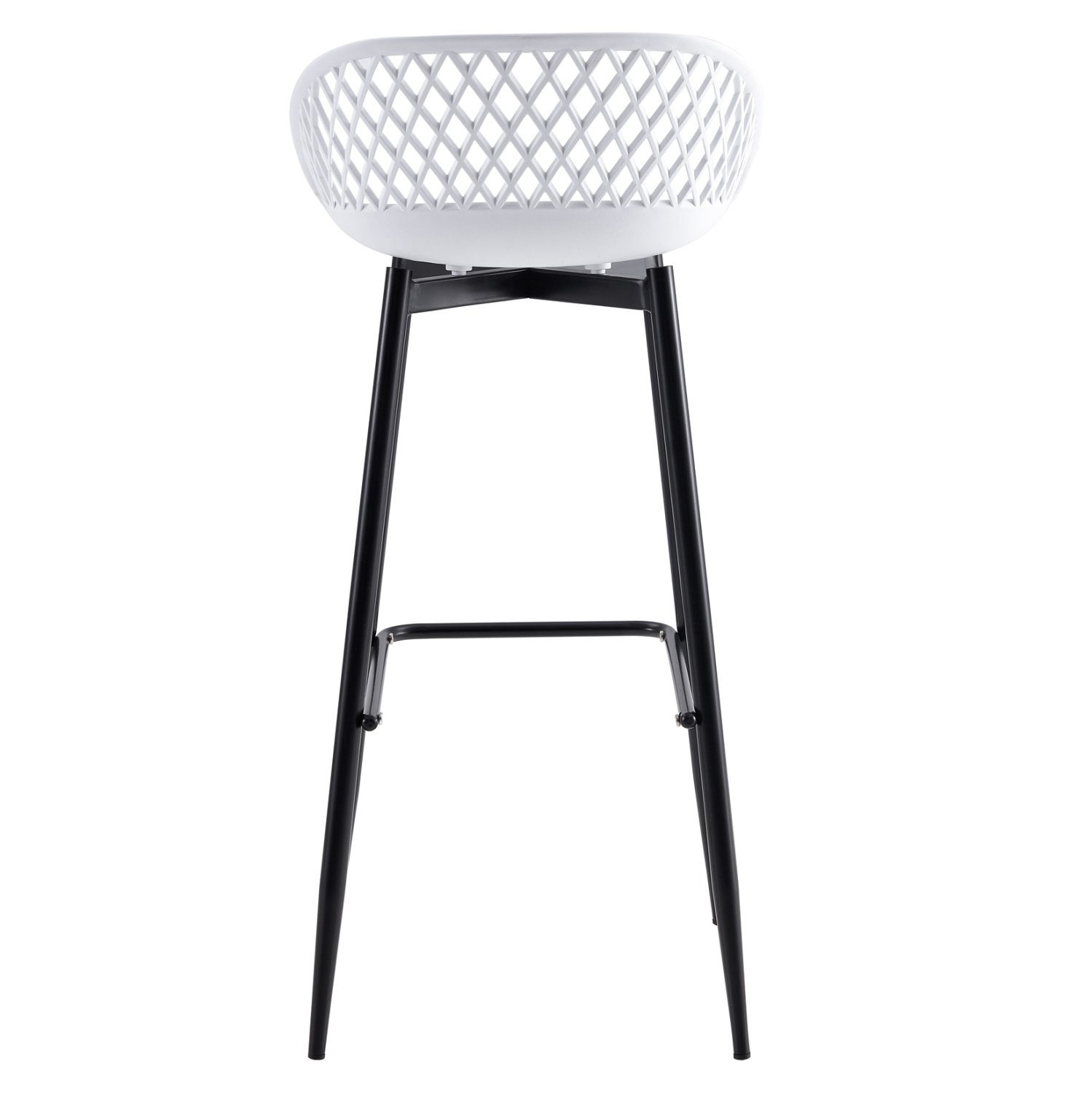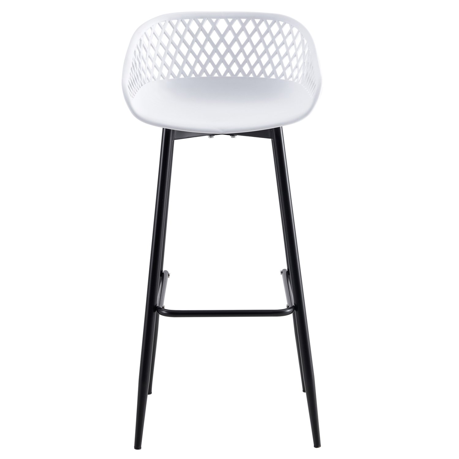 Το σκαμπό μπαρ AVAYA είναι κατασκευασμένο από πολυπροπυλένιο σε ΛΕΥΚΗ απόχρωση, με ΜΑΥΡΑ μεταλλικά πόδια.
