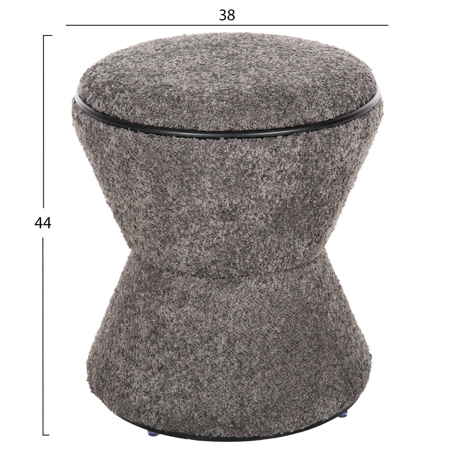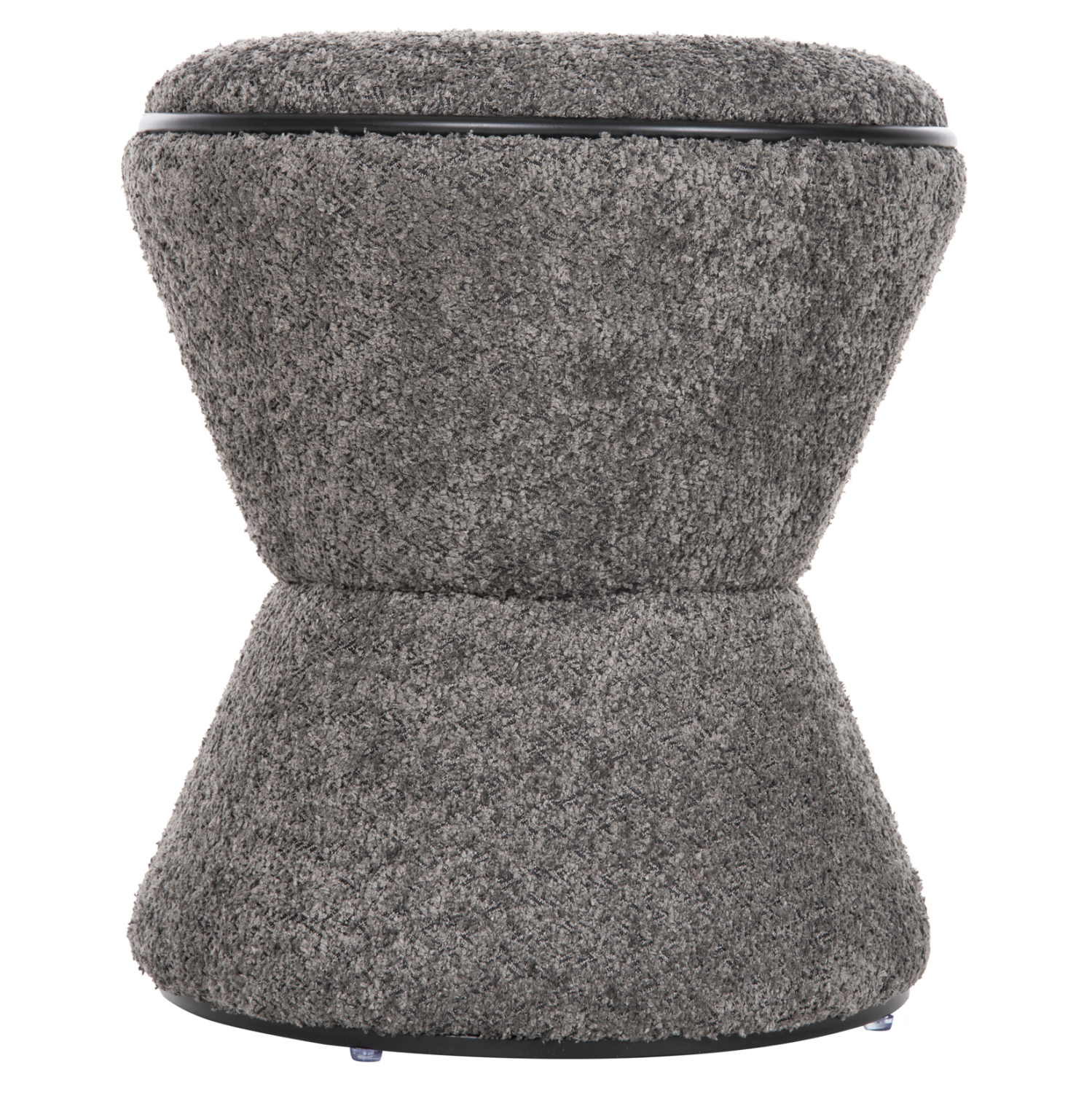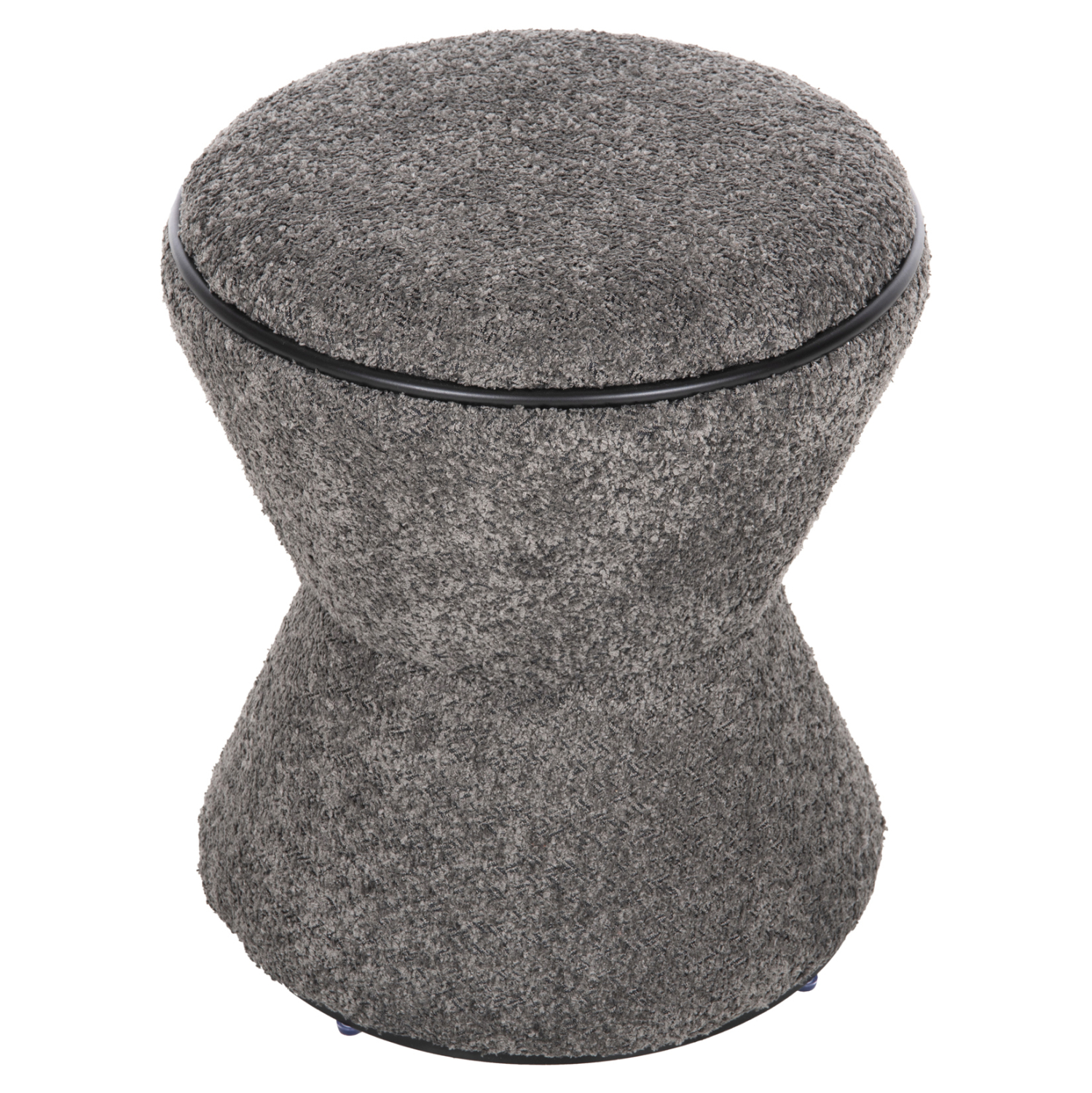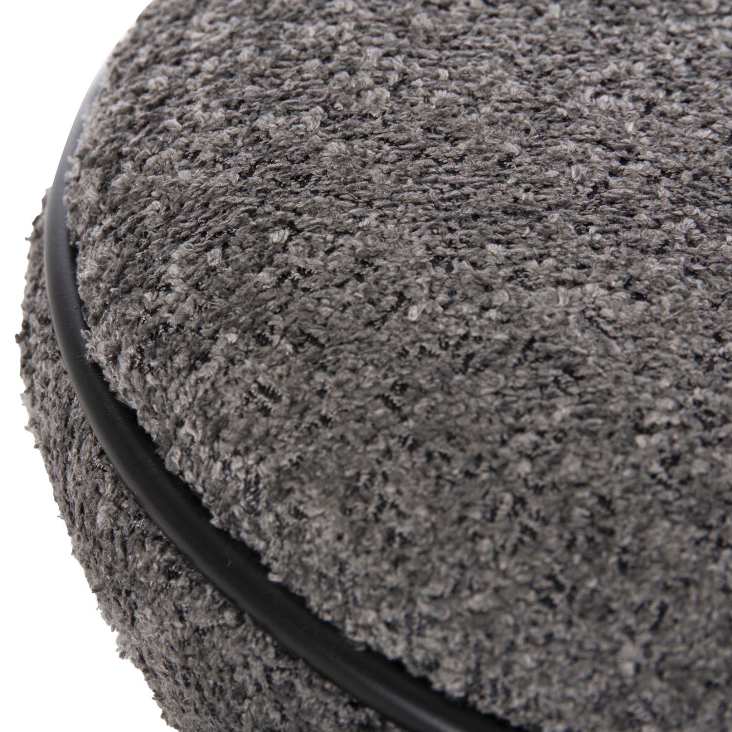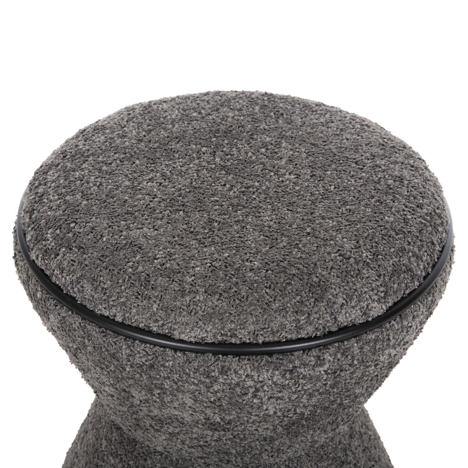 Σκαμπό κυλινδρικό LINNER επενδυμένο με ΓΚΡΙ μπουκλέ ζεστό ύφασμα και μαύρη λεπτομέρεια («δαχτυλίδι») στο κάθισμα και στην βάση.