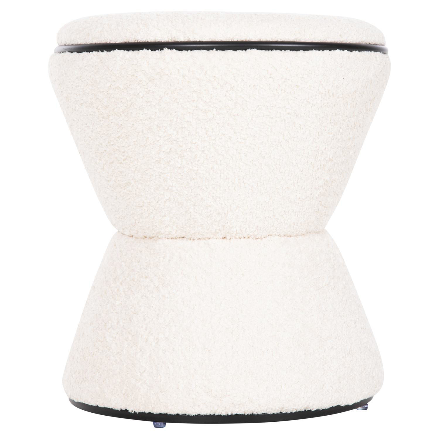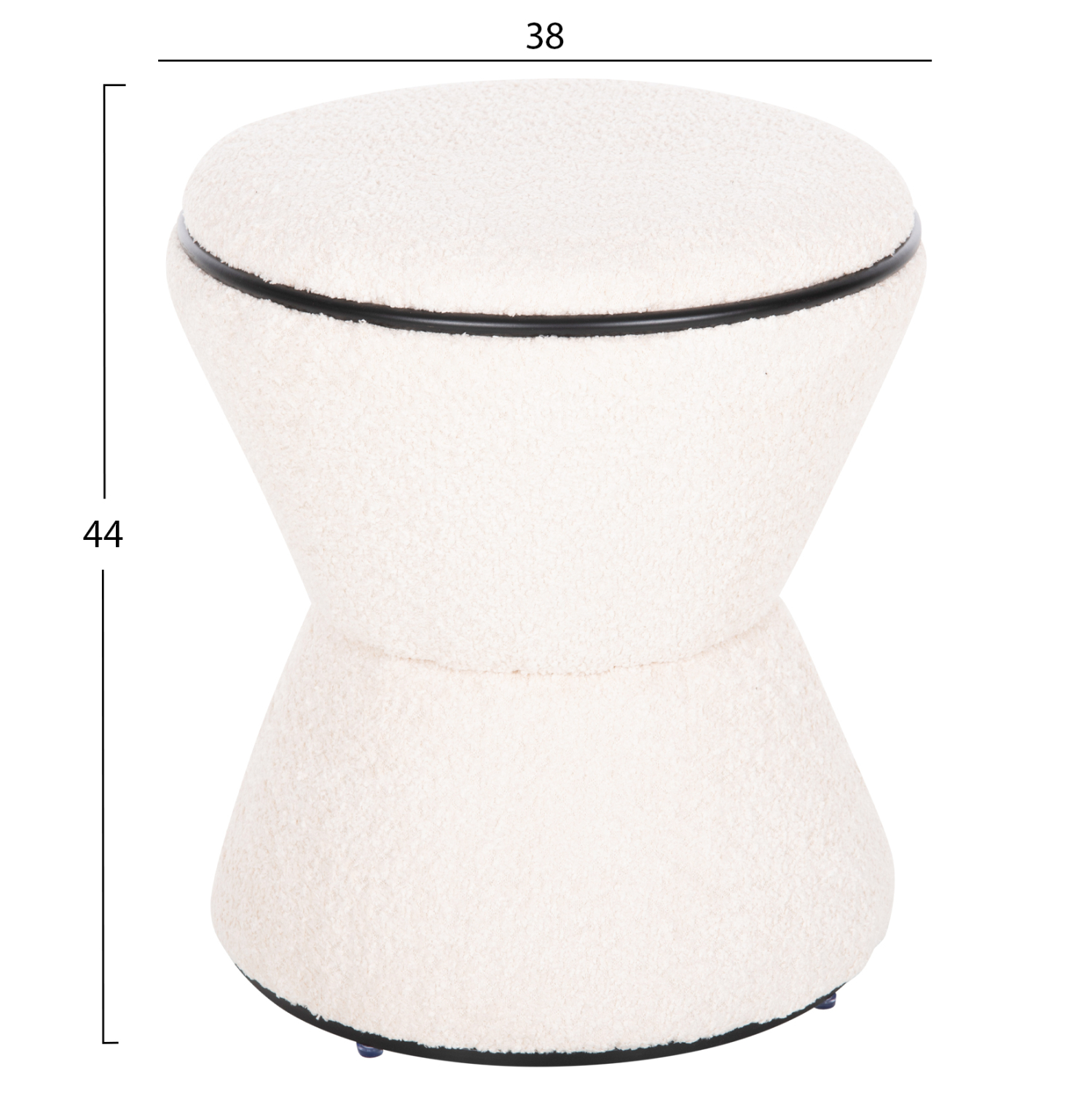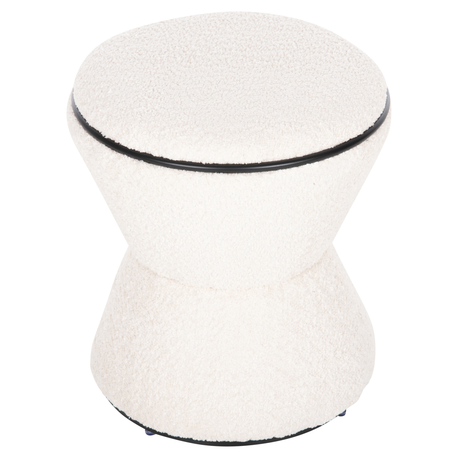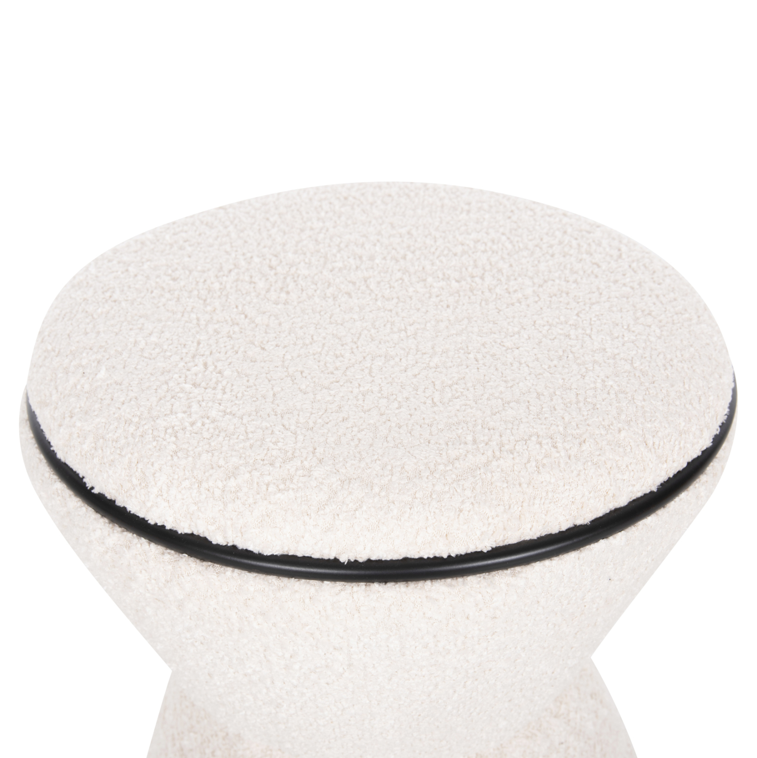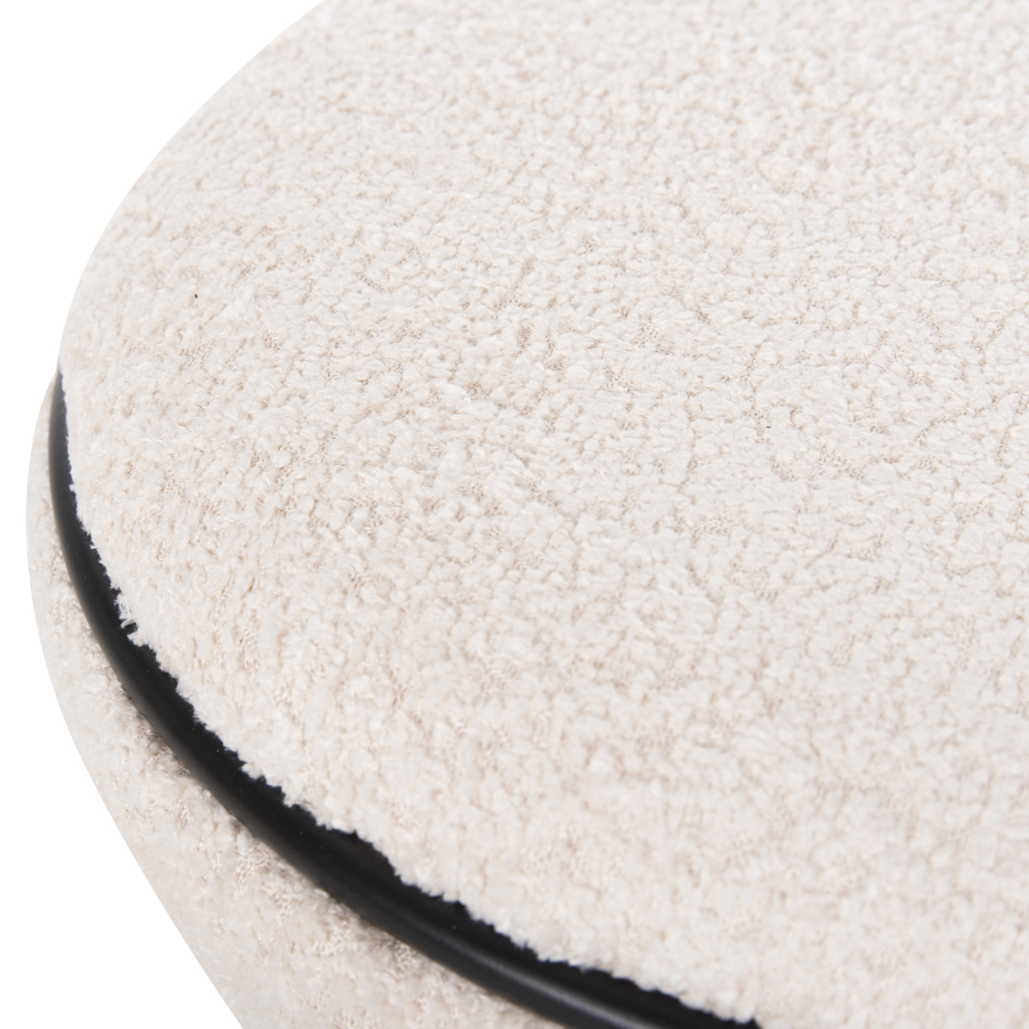 Σκαμπό κυλινδρικό LINNER επενδυμένο με ΕΚΡΟΥ μπουκλέ ζεστό ύφασμα και μαύρη λεπτομέρεια («δαχτυλίδι») στο κάθισμα και στην βάση.