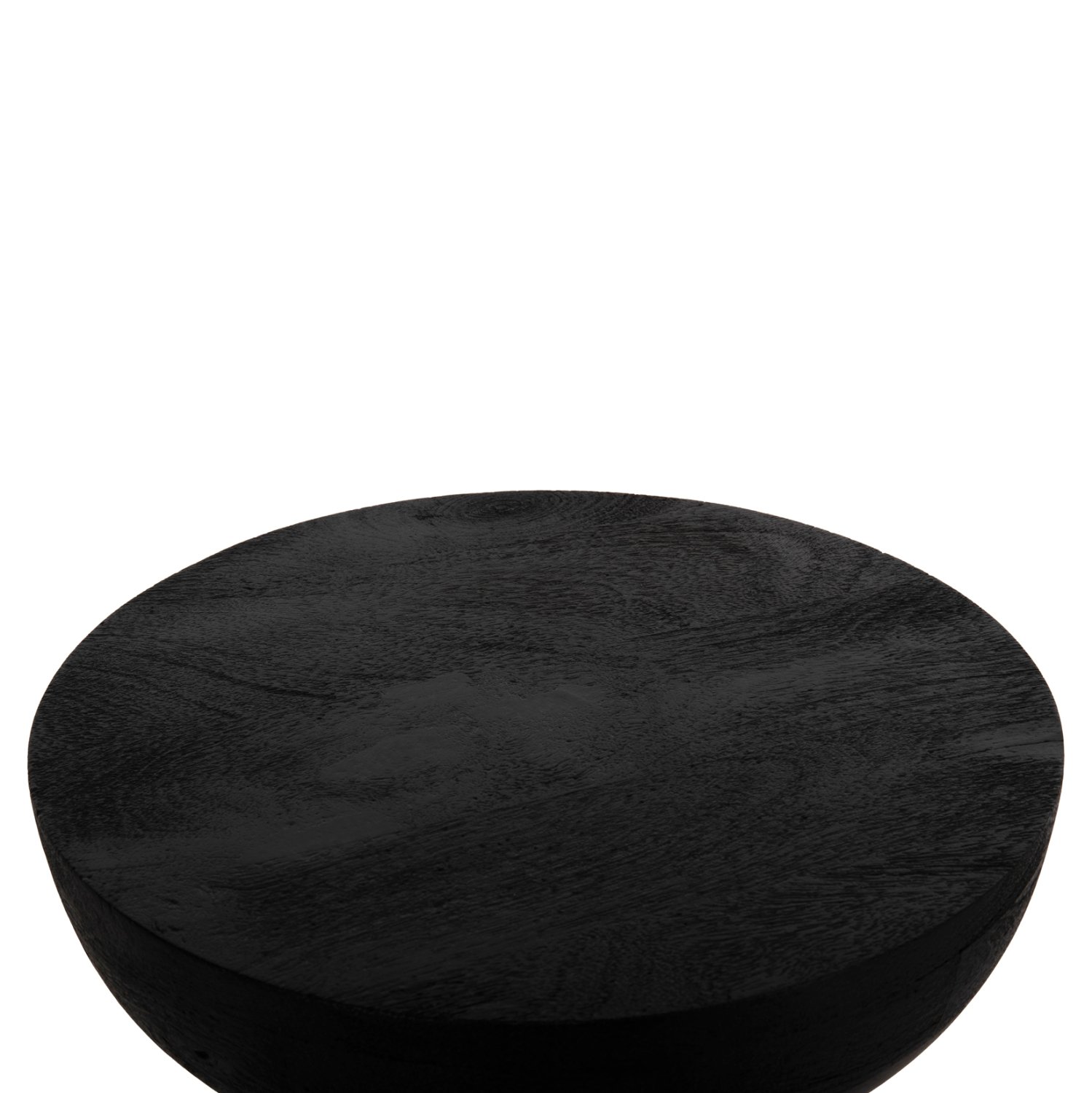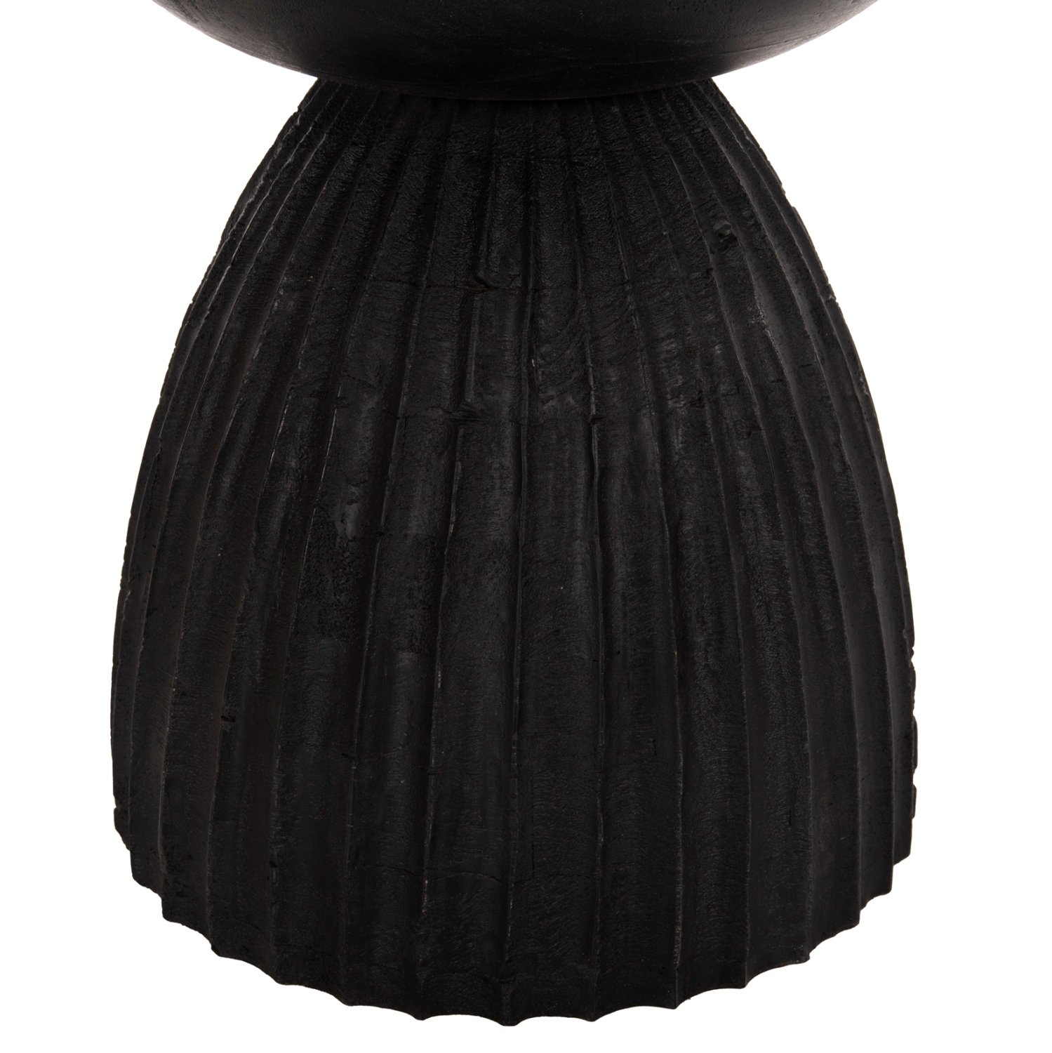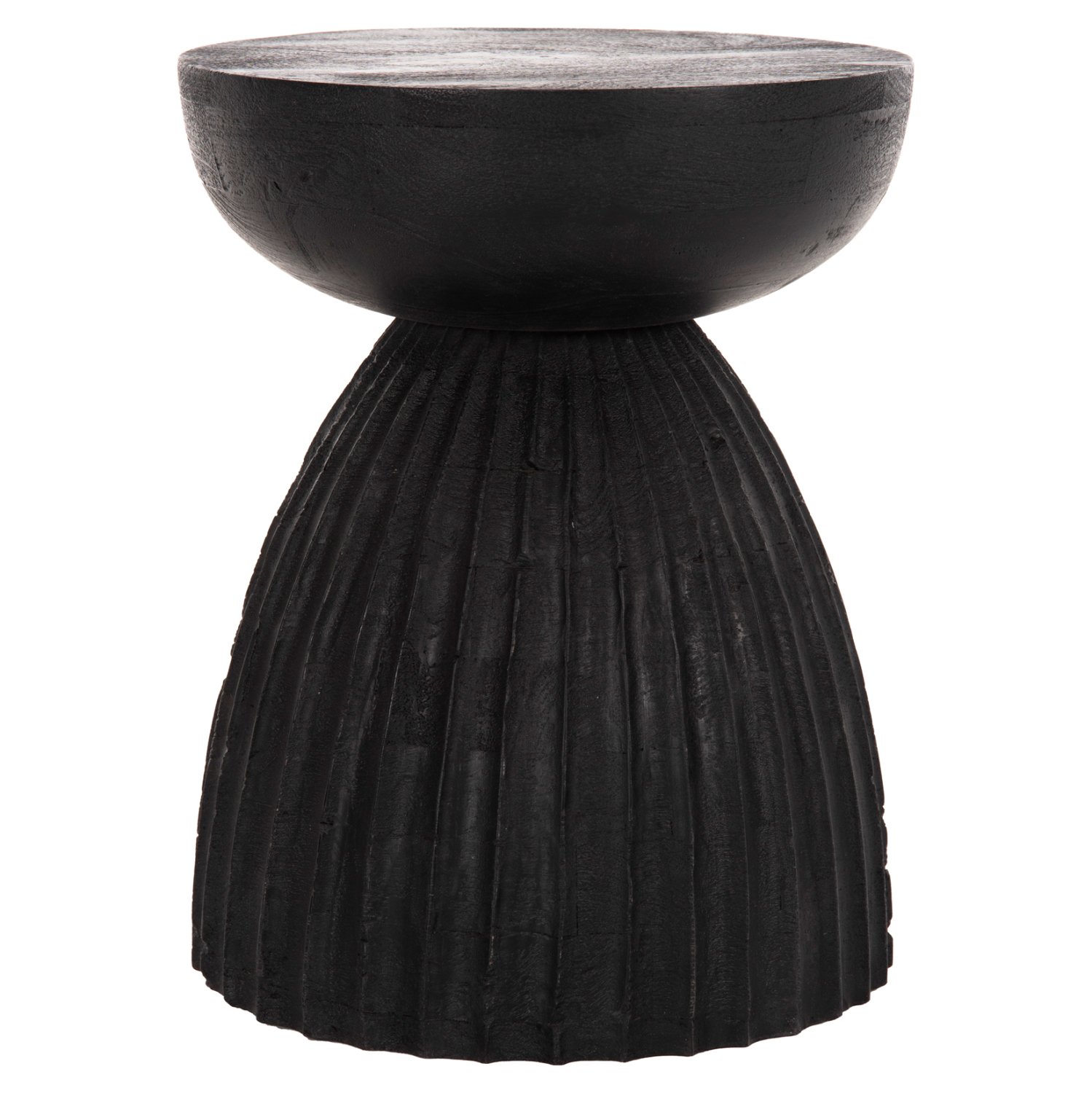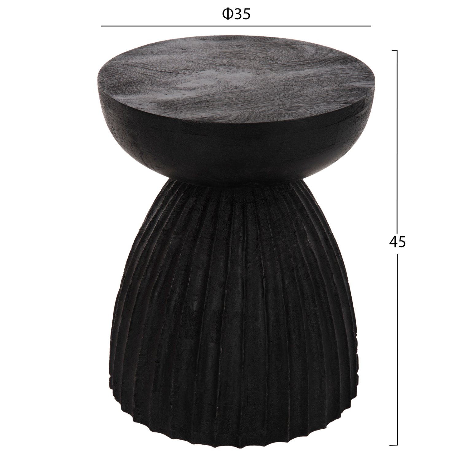 Το σκαμπό σαλονιού SCALLOP που είναι εξολοκλήρου κατασκευασμένο από μασίφ ξύλο mango σε ΜΑΥΡΟ χρώμα μπορεί να χρησιμοποιηθεί και ως βοηθητικό τραπεζάκι, χάρη στο κωνικό σχήμα της βάσης που καταλήγει στην στρογγυλή επιφάνεια. Ένα σκαμπό που θα εντυπωσιάσει με τις πτυχώσεις της βάσης και το χρώμα του, αφού είναι sand blasted, προσδίδοντας εικόνα παλαιότητας στο έπιπλο.