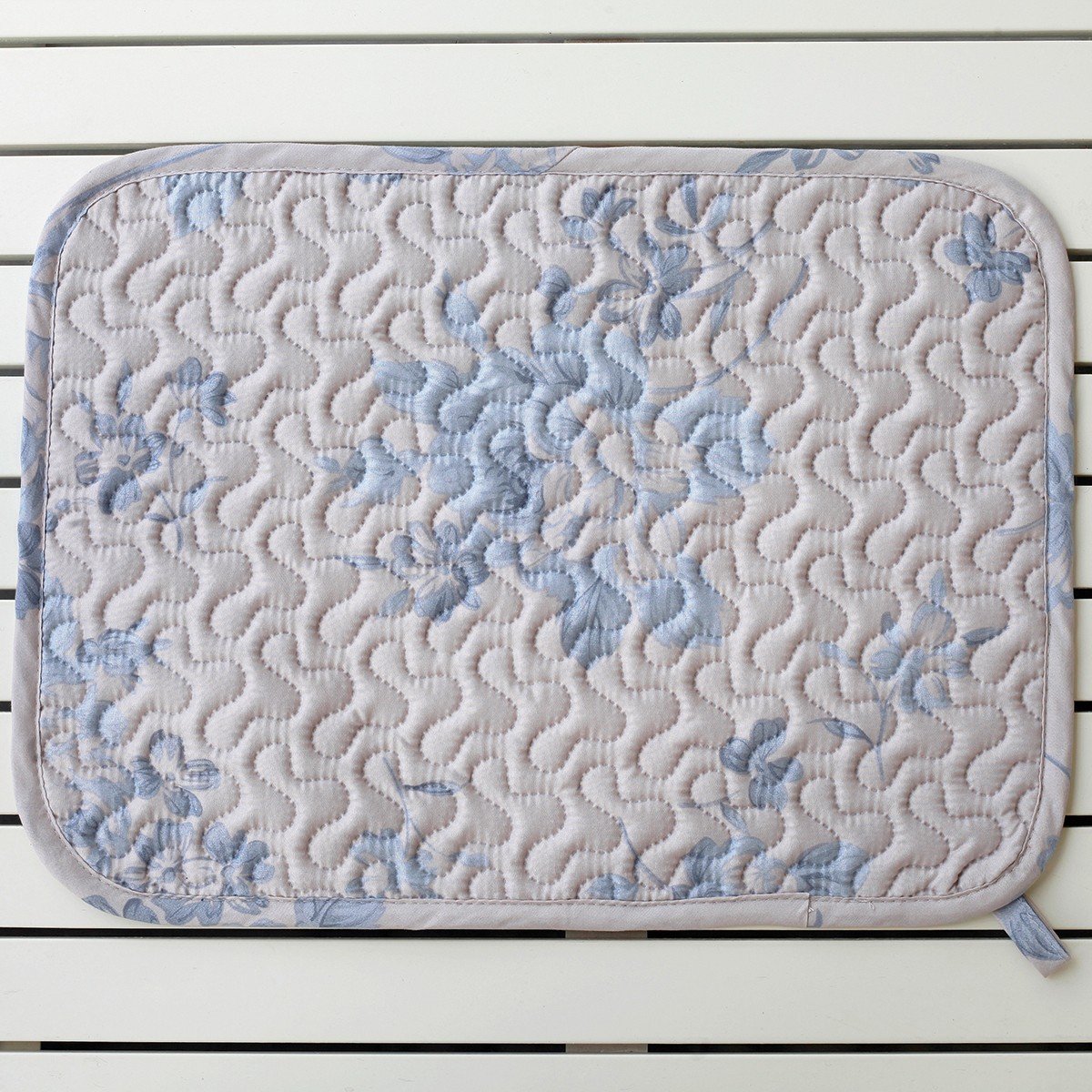 Σουπλά Amelia εμπριμέ, σε γκρι μπλε αποχρώσεις. Κατασκευασμένο από ύφασμα 100% Microfiber, δίνει στυλ σε κάθε τραπέζι και προστατεύει.