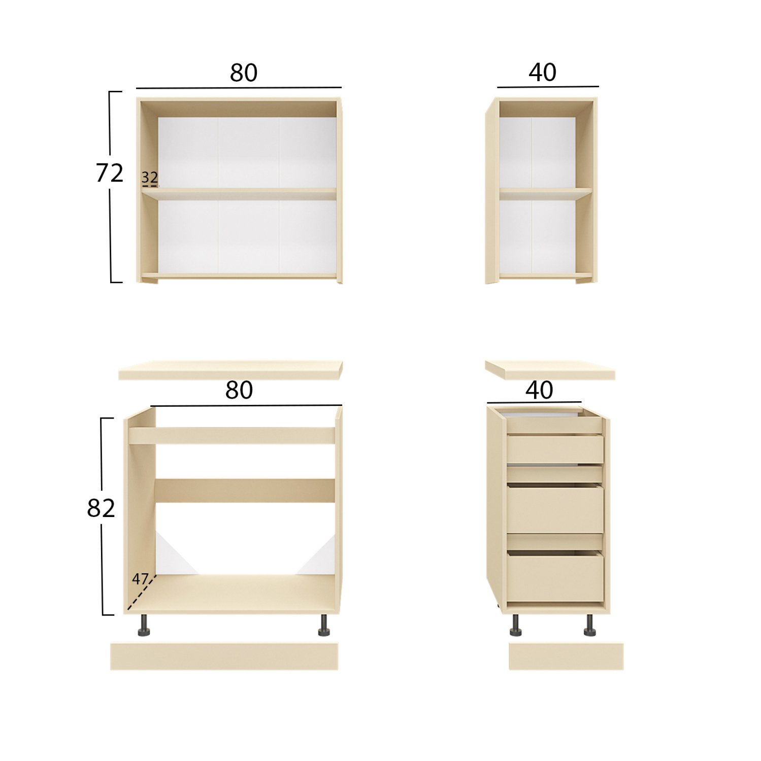 Το κύριο υλικό κατασκευής της κουζίνας είναι η εξαιρετικής ποιότητας μελαμίνη με πάχος 16 χιλιοστά. Η μελαμίνη είναι είδος ξύλου σε μορφή μοριοσανίδας. Οι μοριοσανίδες είναι προϊόντα που έχουν τη μορφή πλάκας (panel) και προέρχονται από τη συγκόλληση μέσω πρεσσαρίσματος, μικρών σε διαστάσεις τεμαχιδίων ξύλου (συνήθως ελάτης, οξιάς, ερυθρελάτης, κτλ) με την βοήθεια διάφορων ρητινούχων υγρών. Έπειτα, η μοριοσανίδα επενδύεται, συνήθως με συνθετικά υλικά, όπως φύλλα χαρτιού (μελαμίνες). Ως υλικό είναι πολύ ανθεκτικό και με μεγάλη σκληρότητα. Άρα, πρόκειται για ένα συνθετικό υλικό με πολύ σκληρή επιφάνεια, με αποτέλεσμα να είναι πολύ ανθεκτική στις γρατζουνιές, στην τριβή και τους λεκέδες.