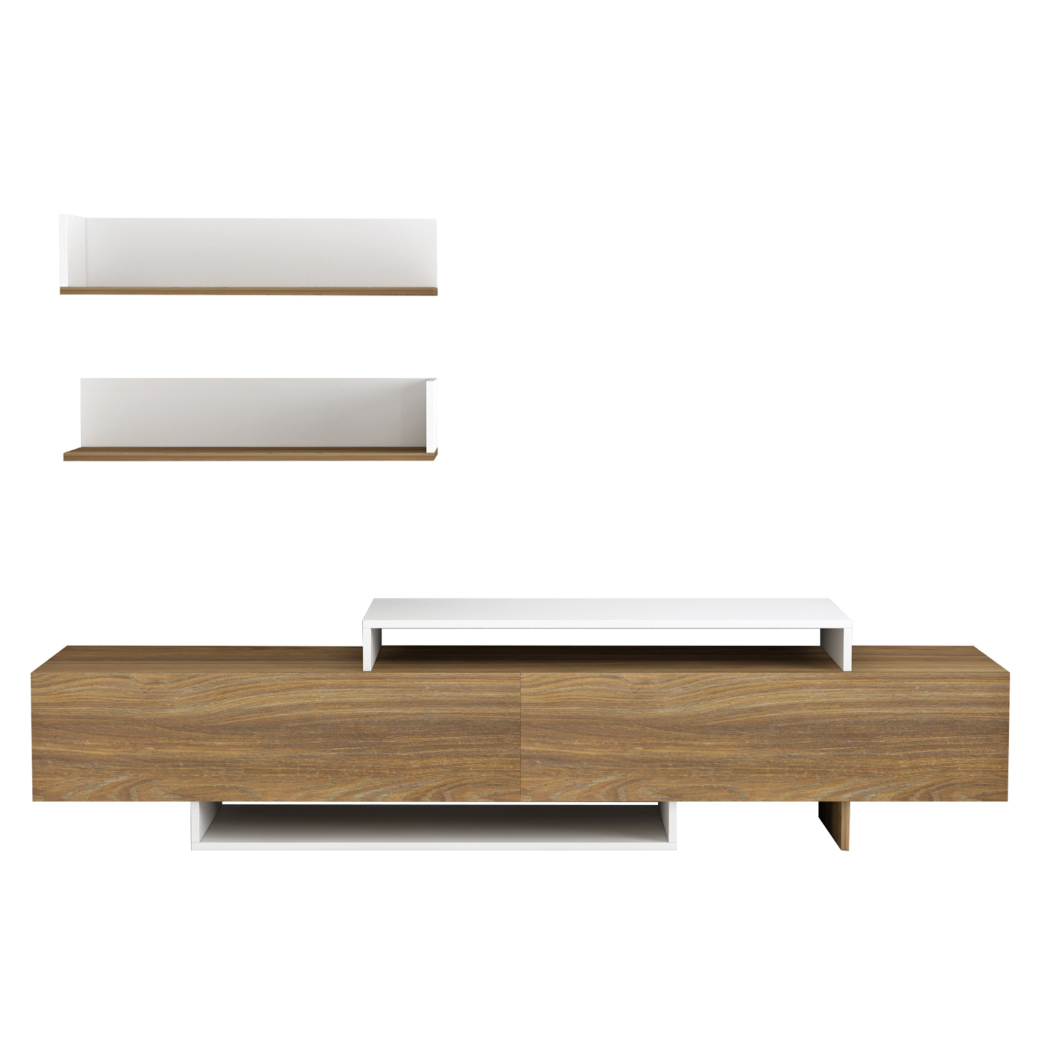 Το EDUARDO είναι μια μοντέρνα σύνθεση τηλεόρασης, που θα ομορφύνει το σαλόνι σας! Αποτελείται από 2 μέρη. Το έπιπλο δαπέδου που διαθέτει 2 ντουλάπια κι ένα ράφι, και μια επιτοίχια σύνθεση με 2 ανεξάρτητα ράφια, παρόμοιας αισθητικής. Η σύνθεση έρχεται σε όμορφη διχρωμία ΛΕΥΚΟΥ-ΦΥΣΙΚΟΥ και θα απογειώσει την εικόνα του σαλονιού σας.
